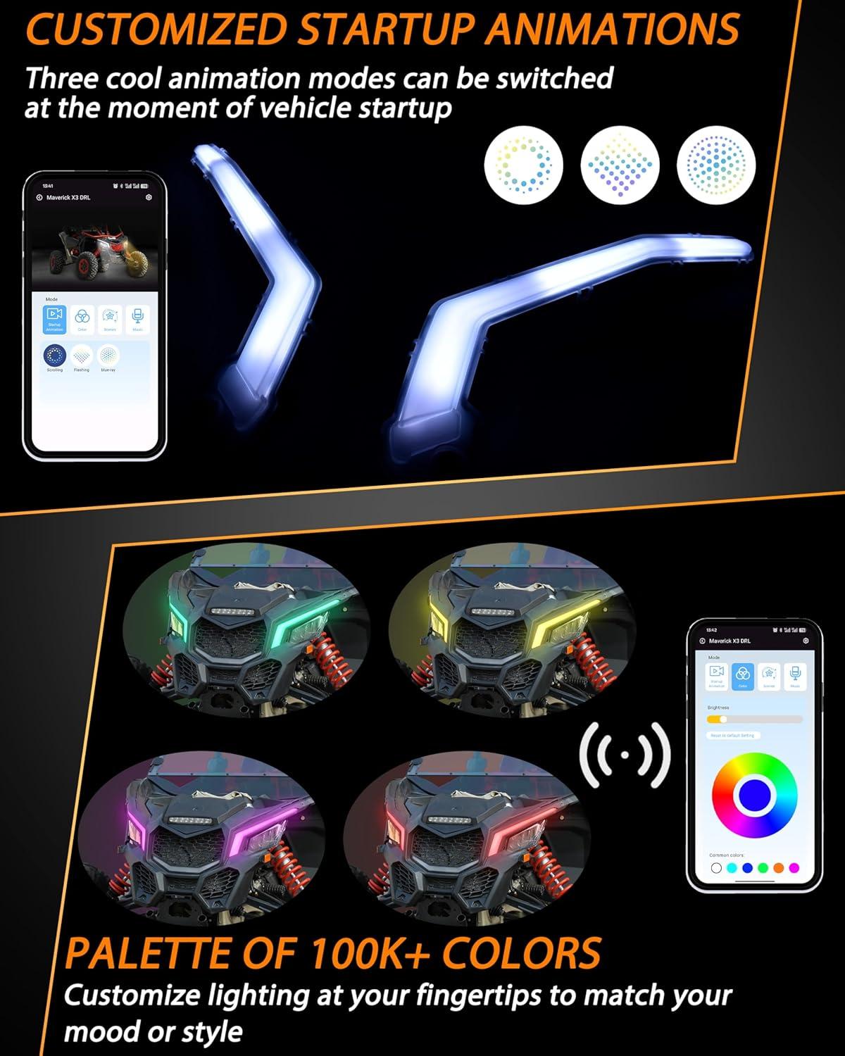 SAUTVS Smart RGB LED Signature Fang Lights for Maverick X3, App Controlled Colors Turn Signals Startup Animation Music Sync Lights for Can-Am Maverick X3 & X3 Max Trail Sport 2017-2025 Accessories