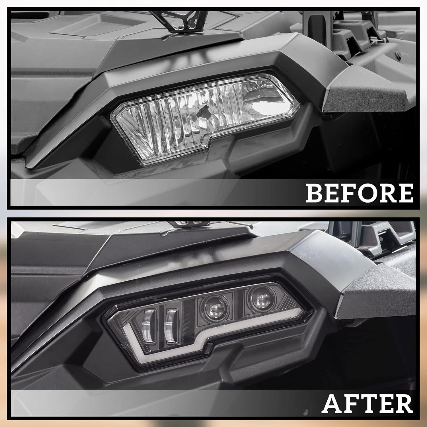 Unique sports elements appearance and full LED design, Daytime running lights + turn signals + low beam + high beam; Brighter than halogen lights, reaching 3600 Lumens; Streamlined design, match your vehicle perfectly, delivering a great driving experience