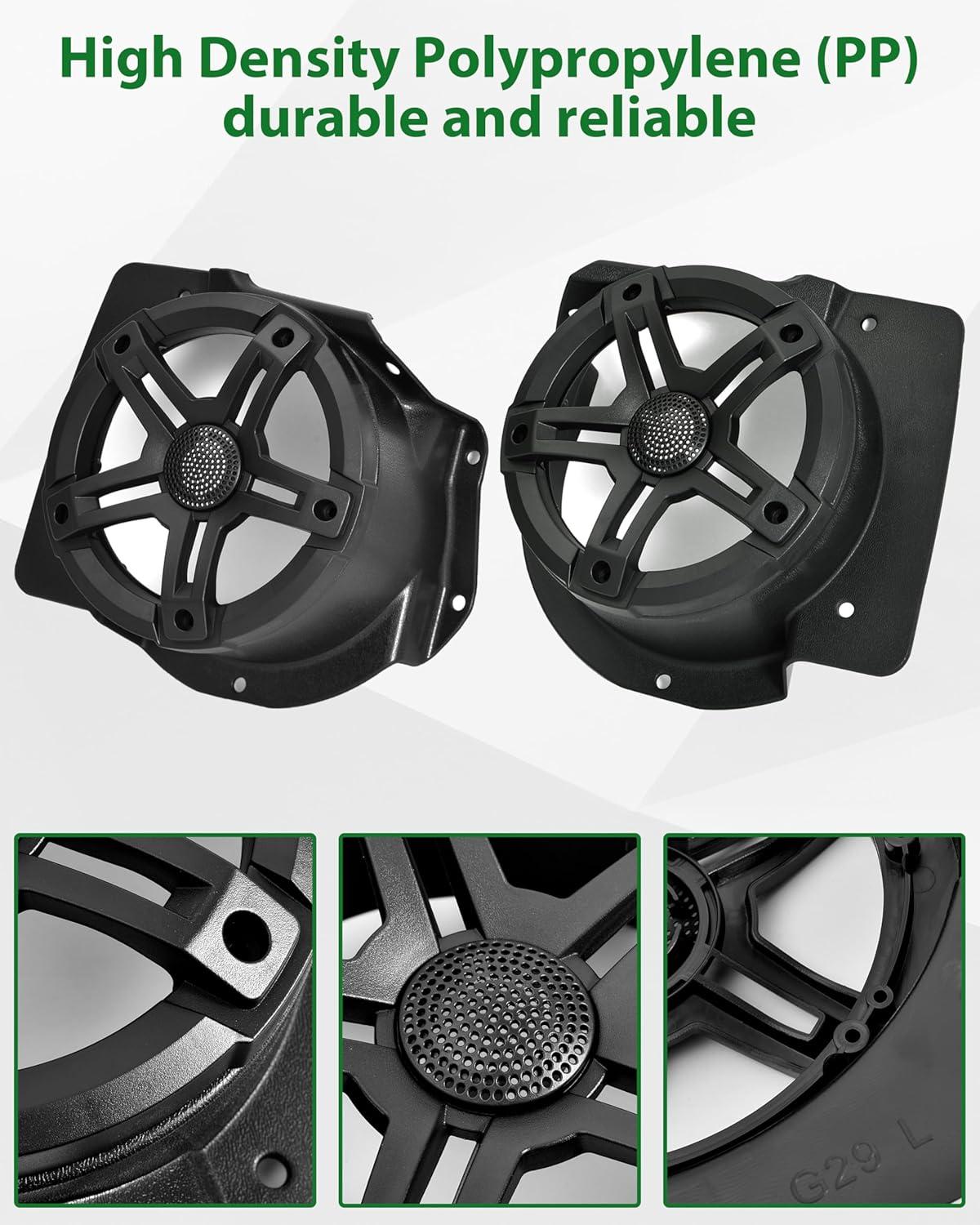 Premium Materials: Made from high-density PP plastic, resisting cracking and vibrations; The rugged build block the mud, dirt, sand or waters to enter your speakers, and prevent speakers falling down