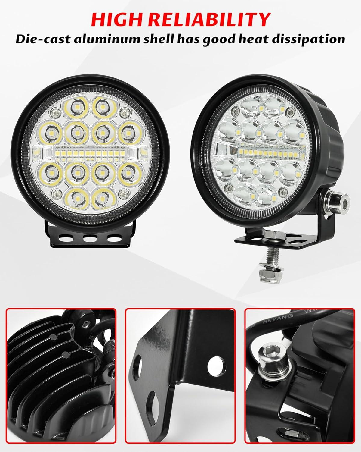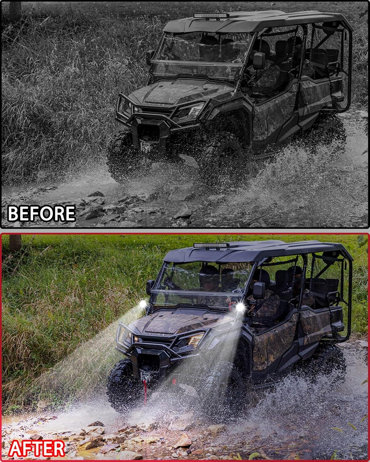 High-Performance Illumination: Built-in high quality LED beads, brighter than halogen lights and energy saving; The bright LED pods enhance nighttime driving safety, ensuring clear vision on dark trails or rural roads; These auxiliary lights activate with your high beams, providing extended visibility for off-road adventures