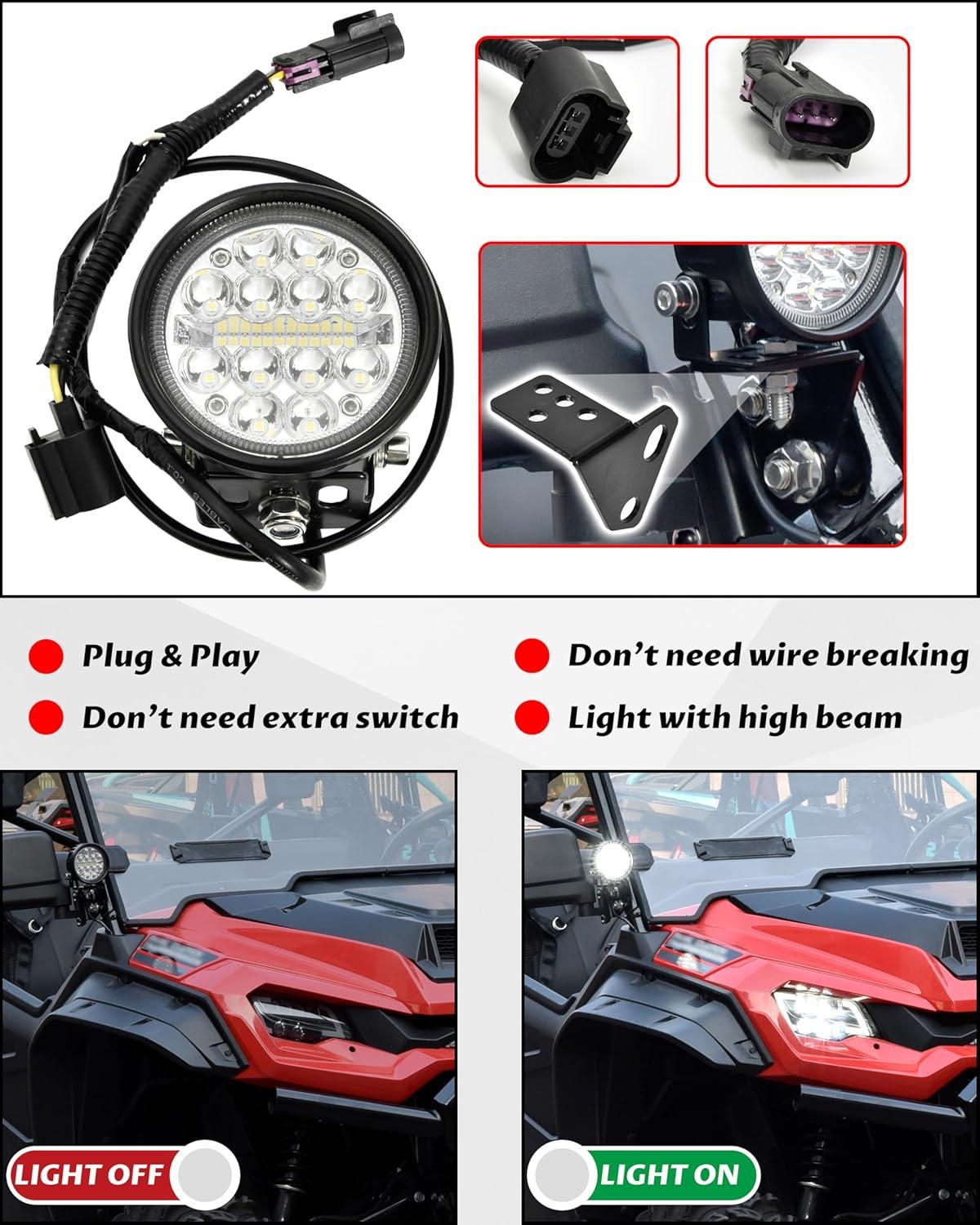 Professional Designed Bracket: This spotlight is equipped with all the mounting accessories. Combined with the mounting bracket which separately designed for Pioneer 1000, it can be firmly fixed to the A-pillar and will not fall off. The plug-and-play wiring harness plug-in simplifies your installation, sparing you the hassle of wiring and allowing you to complete the installation within minutes