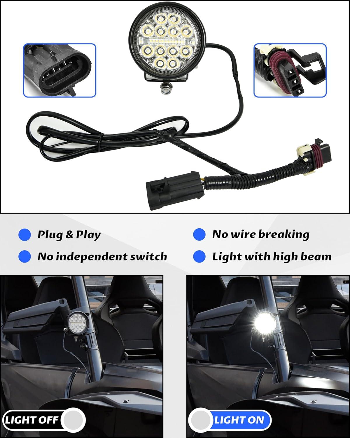 Specially Designed Bracket: This spotlight is equipped with all the mounting accessories; The bracket specially designed for Talon 1000 can be firmly fixed on the A-pillar without falling off; The plug-and-play wiring harness plug-in simplifies your installation, sparing you the hassle of wiring and allowing you to complete the installation within minutes