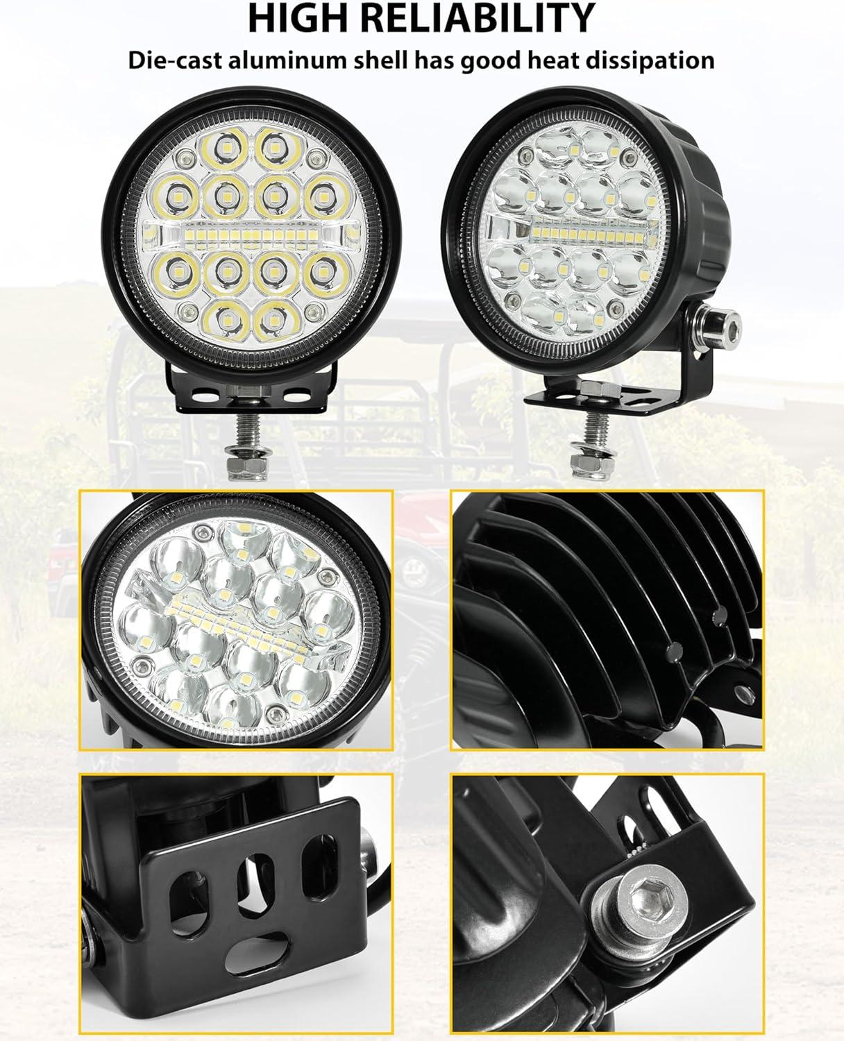 Enhanced Driving Safety: The bright LED pods enhance nighttime driving safety, ensuring clear vision on dark trails or rural roads; Improves visibility in low-light conditions, reducing eye strain during long drives