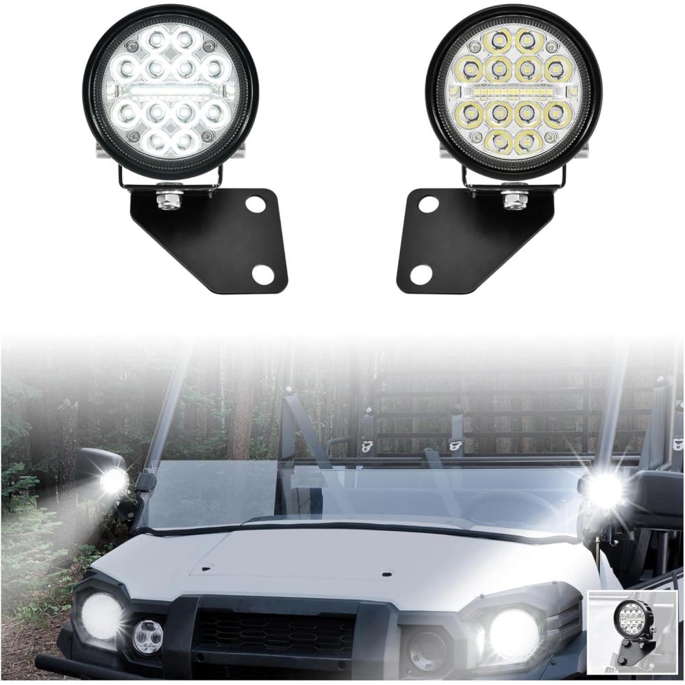 SAUTVS A-Pillar LED Pod Lights for Kawasaki Mule Pro FXT DXT DX FX 2015-2025 Accessories, Auxiliary Lights with Mounting Bracket & Wiring Harness, Plug and Play (2PCS)