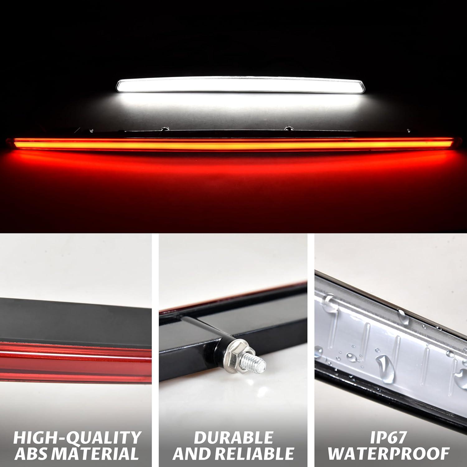 Plug & Play, easy to install, please refer to the installation video (Black Rear Center Taillight)in the listing before your installation; Package Include: 1PCS LED Front Accent Light and 1PCS Red Rear Center Taillight