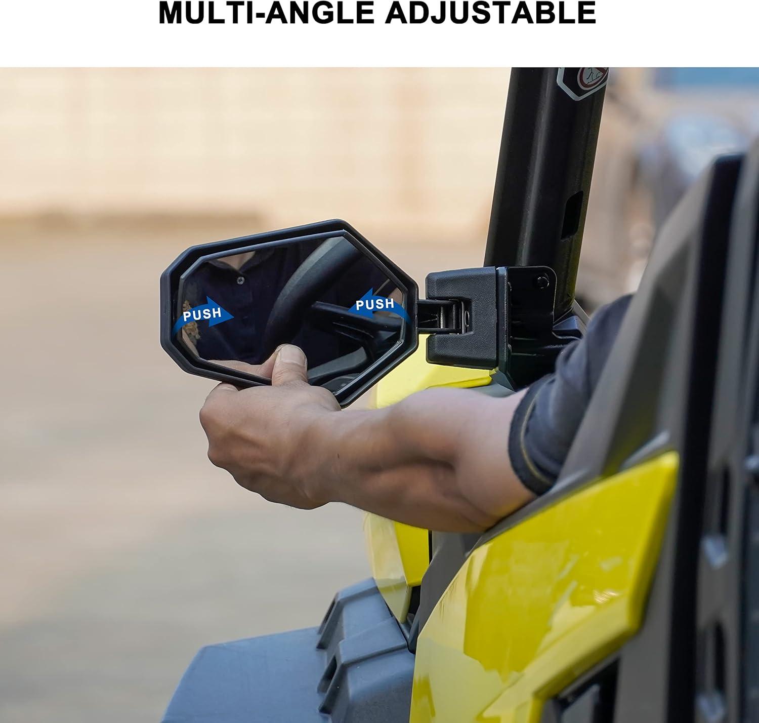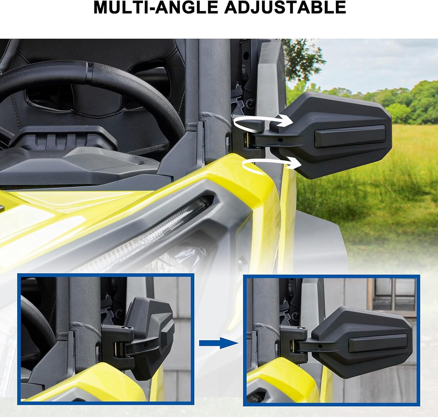 [SIDE MIRROR] – Multi-angle adjustable mirrors, with the spring-loaded pivots, can be adjusted horizontally and vertically; Can make it aligned to your sight and increase your viewing range