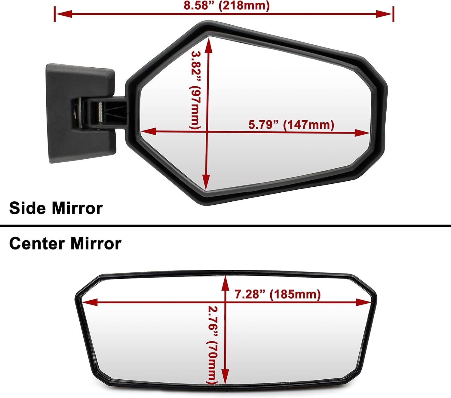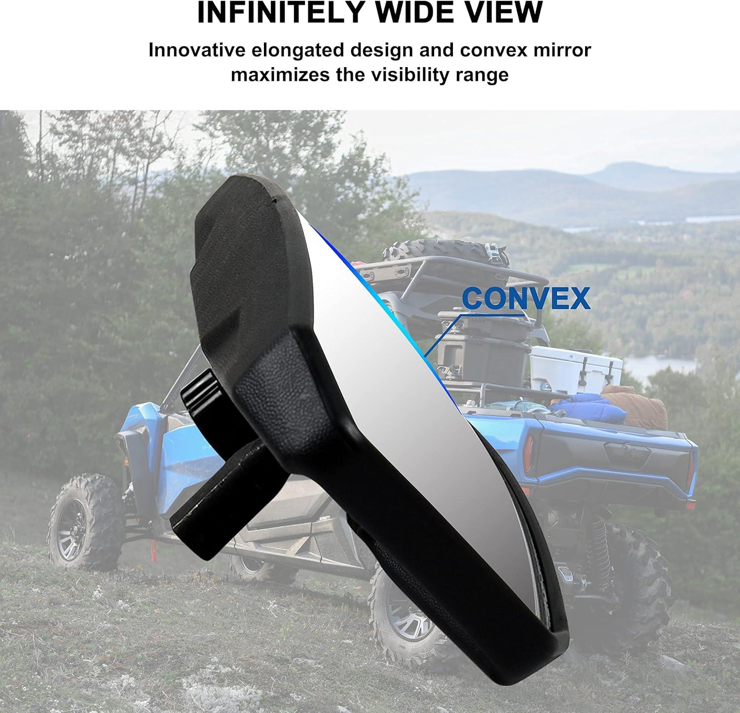 [QUICK INSTALLATION] – Easy installation, no drilling needed; Package Include: 1PCS convex rear view mirror and 2PCS folding side mirrors with mount hardware, installation manual (Please refer to the installation video before your installation)