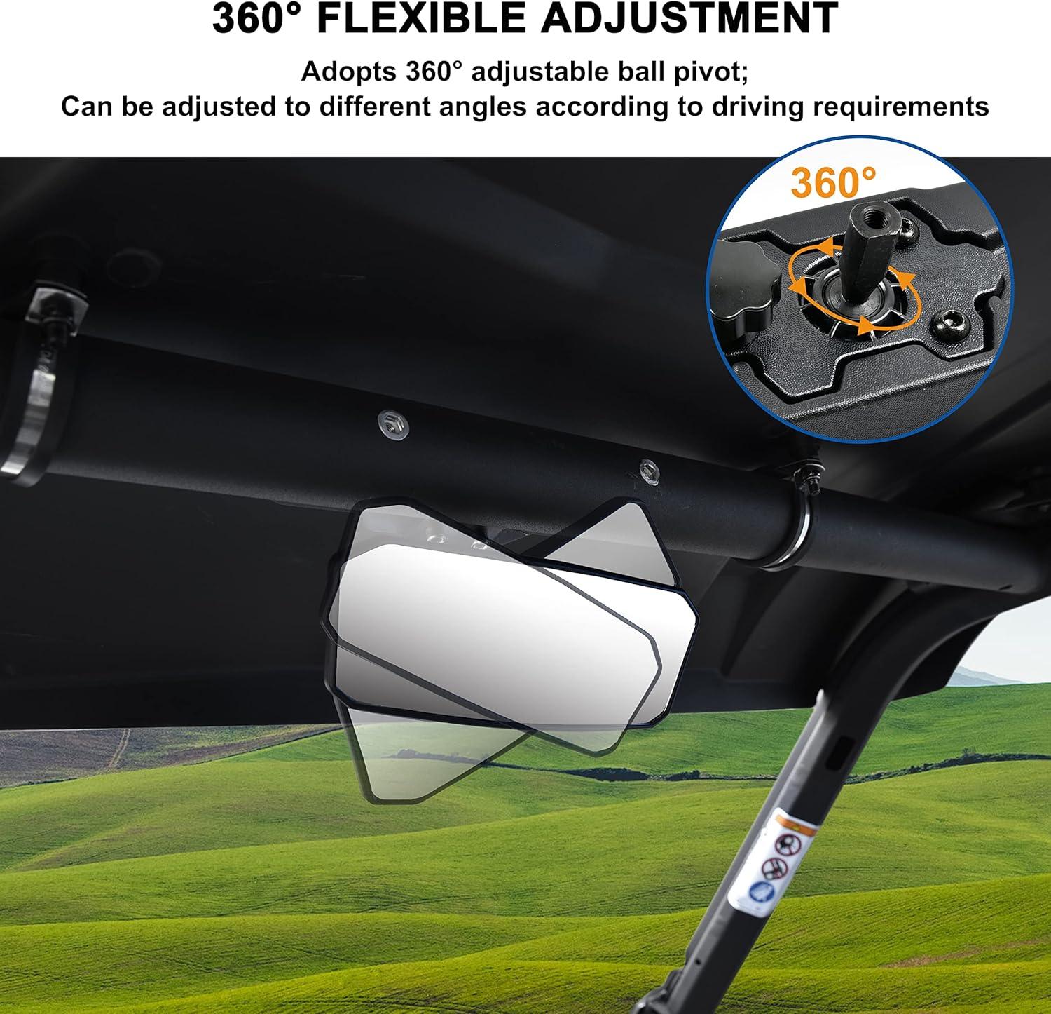 [CENTER REARVIEW MIRROR] – Innovative elongated design and convex mirror maximizes the visibility range, and ensure your driving safety; Adopts 360° adjustable ball pivot; Can be adjusted to different angles according to driving requirements; can also be folded up when not in use, does not take up any space