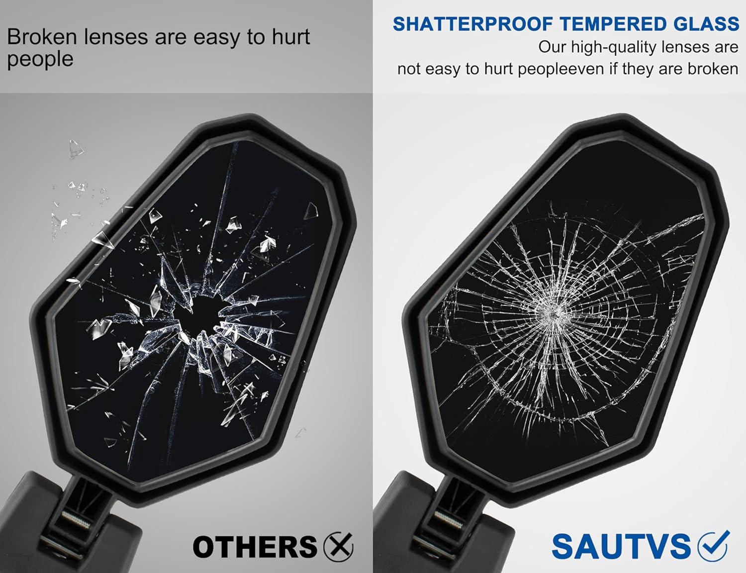 Multi-angle adjustable mirrors, can be adjusted horizontally and vertically, suitable for different sized riders, can make it aligned to your sight and increase your viewing range