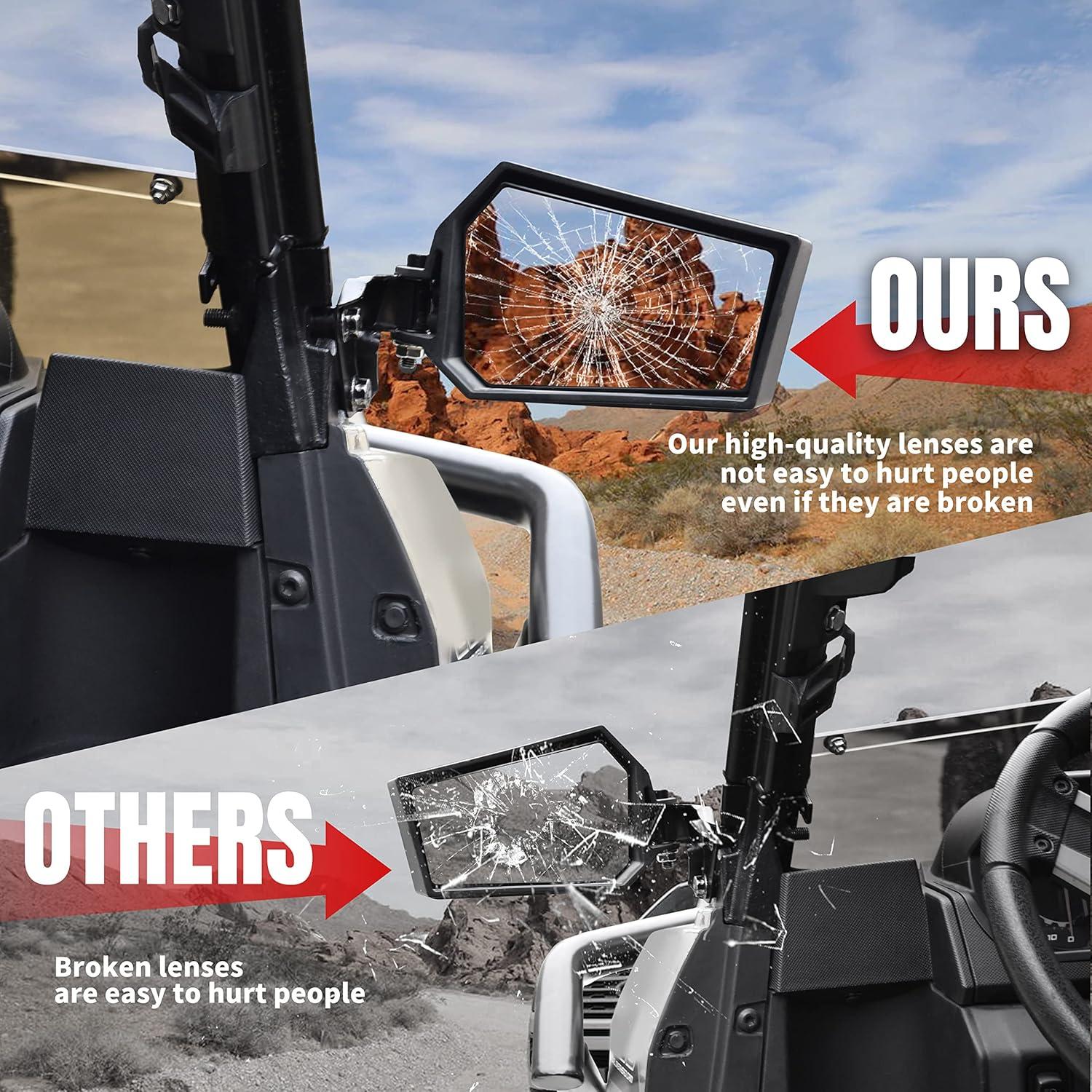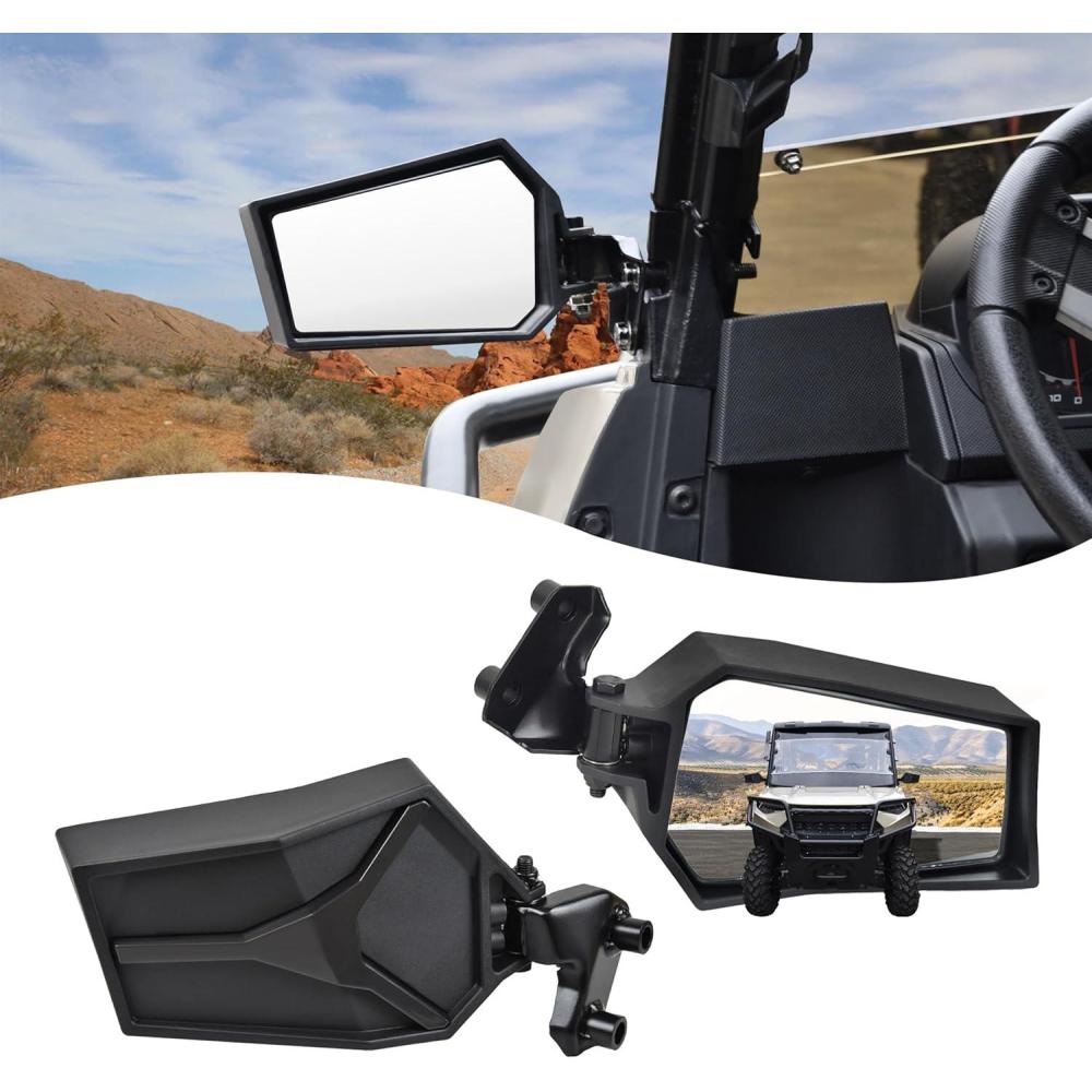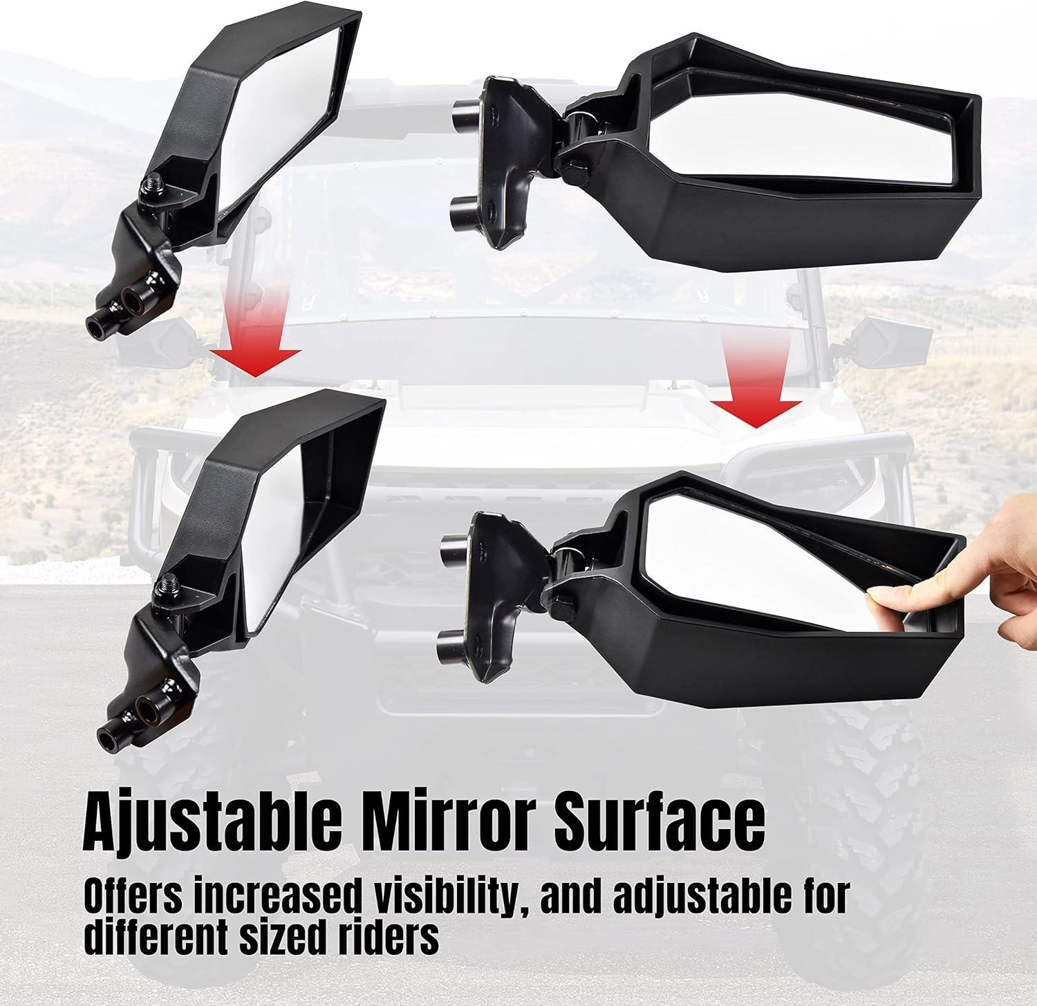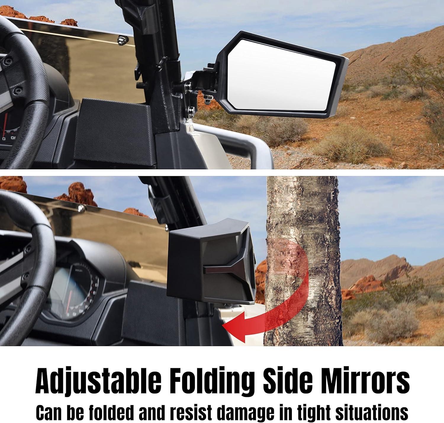 SAUTVS Adjustable Rearview Side Mirrors for Polaris Ranger 1000/XP 1000/Crew 2018-2025 Accessories, Folding Clear Rear View Side Mirrors (One Pair)