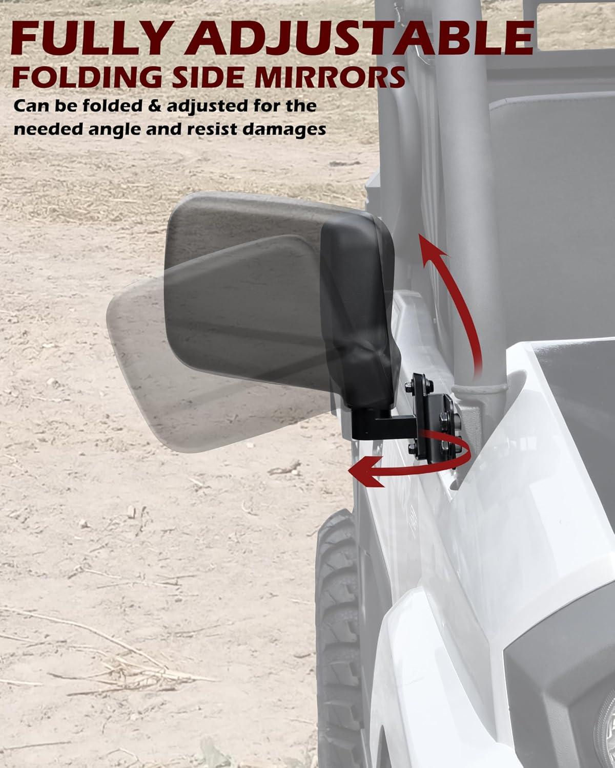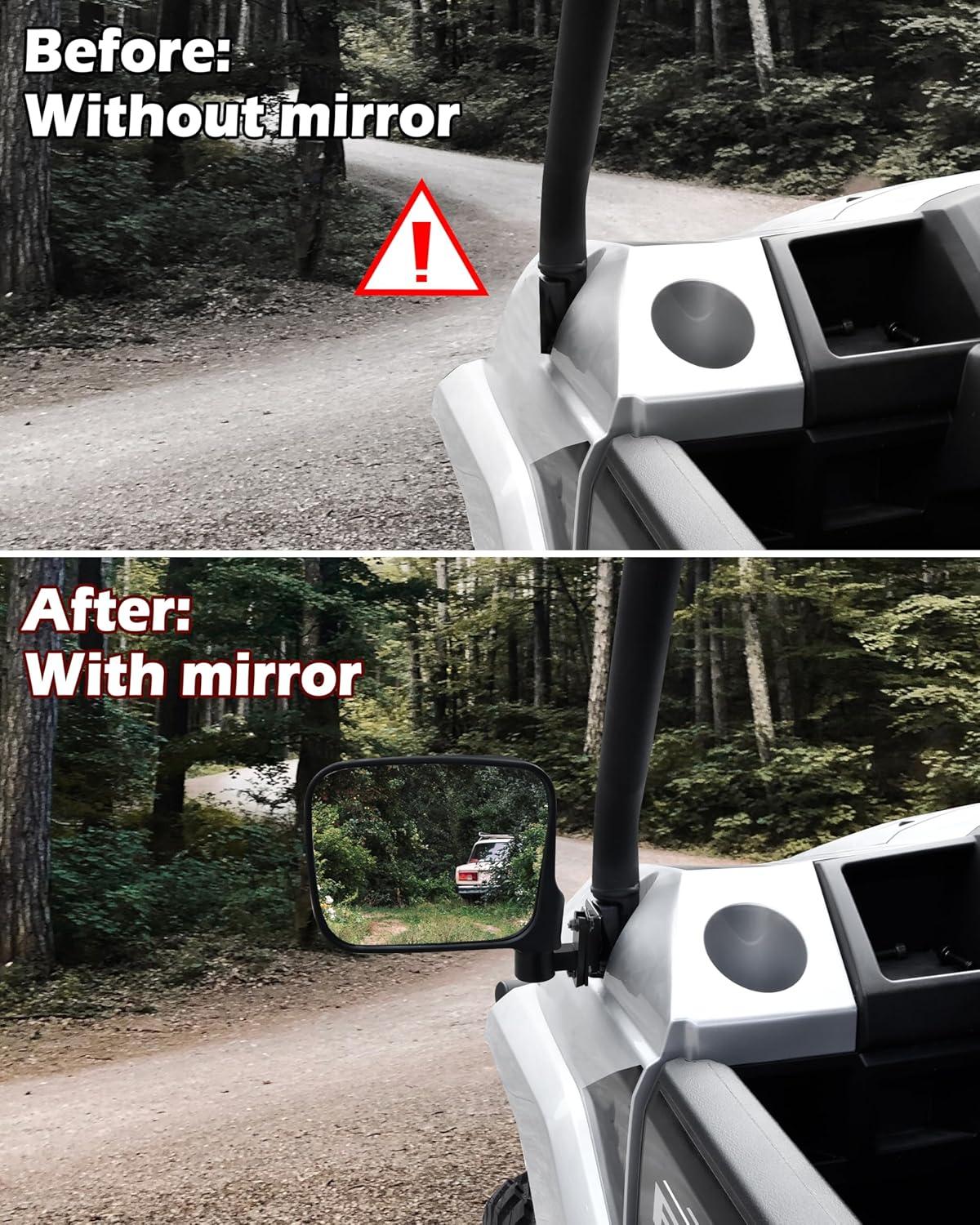 Specially Designed Bracket: The foldable side mirror offers better visibility and wider view, and can adjust different angles for different riders need; The bracket specially designed for your vehicle can be firmly fixed on the A-pillar without falling off