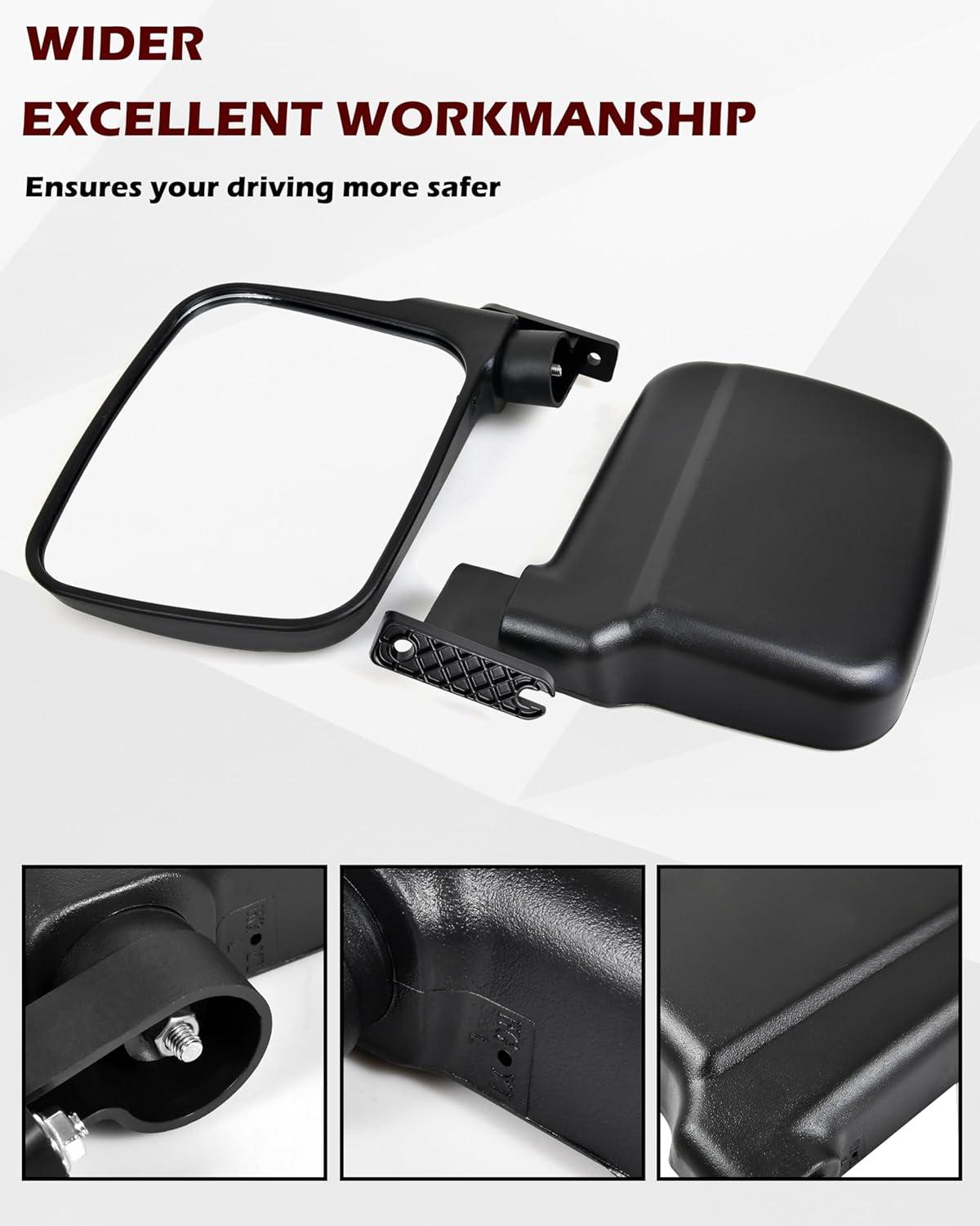 Folding Design: The side rear view mirror has matte black finish, and composed with adjustable mirror and breakaway hinge mounts, which can be folded and resists damage in need situations