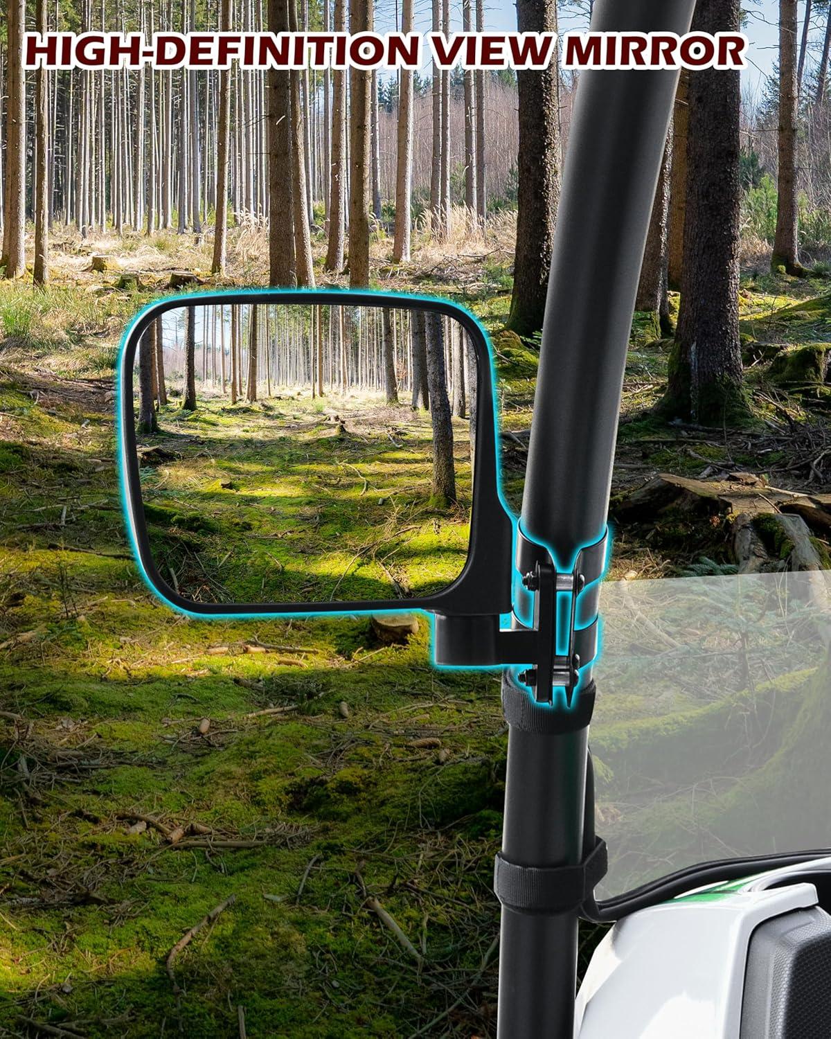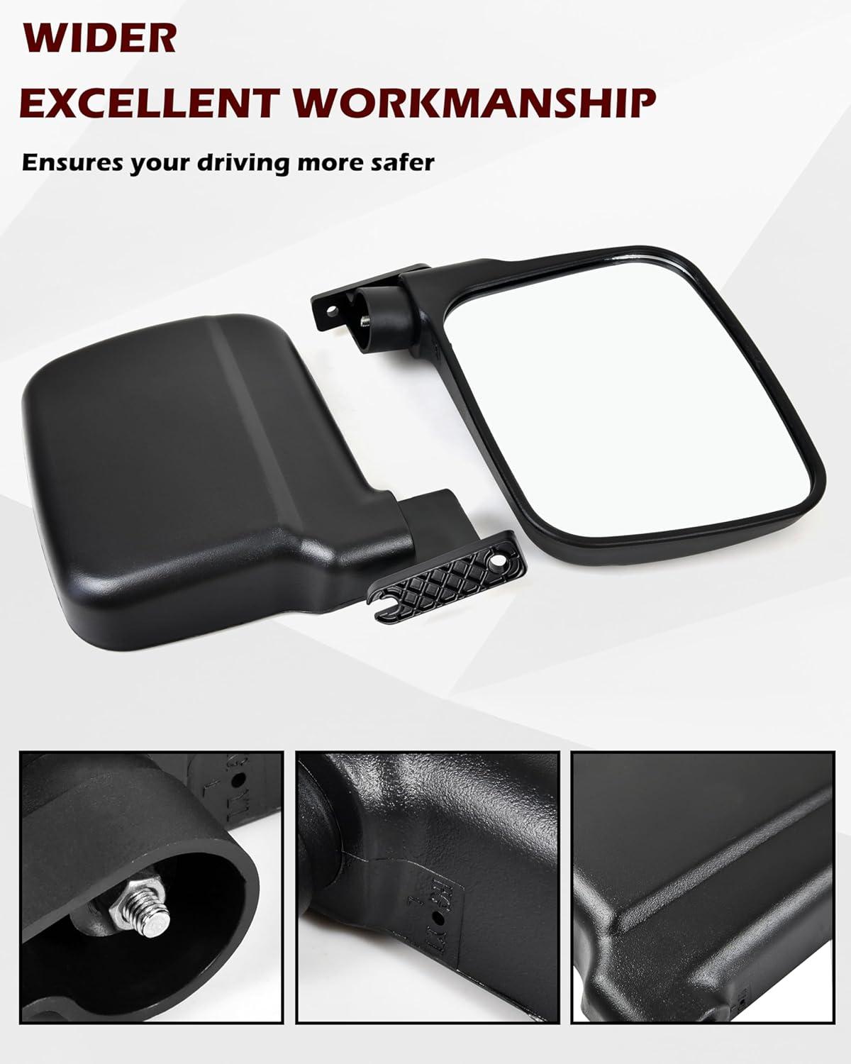 Folding Design: The side rear view mirror has matte black finish, and composed with adjustable mirror and breakaway hinge mounts, which can be folded and resists damage in need situations