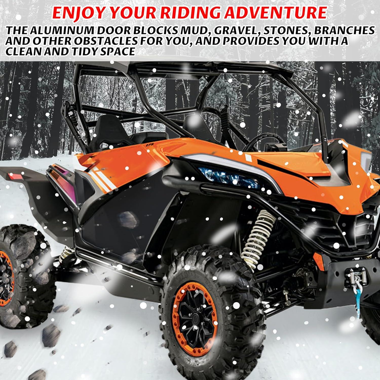 HIGH-QUALITY MATERIAL: The lower half door is made of high-quality thickened aluminum materials, durable, resistant to impact and corrosion, and not easy to rust. It builds a safe riding environment for drivers and passengers which adds extra protection, avoids potential injuries, and let you have a good riding experience.