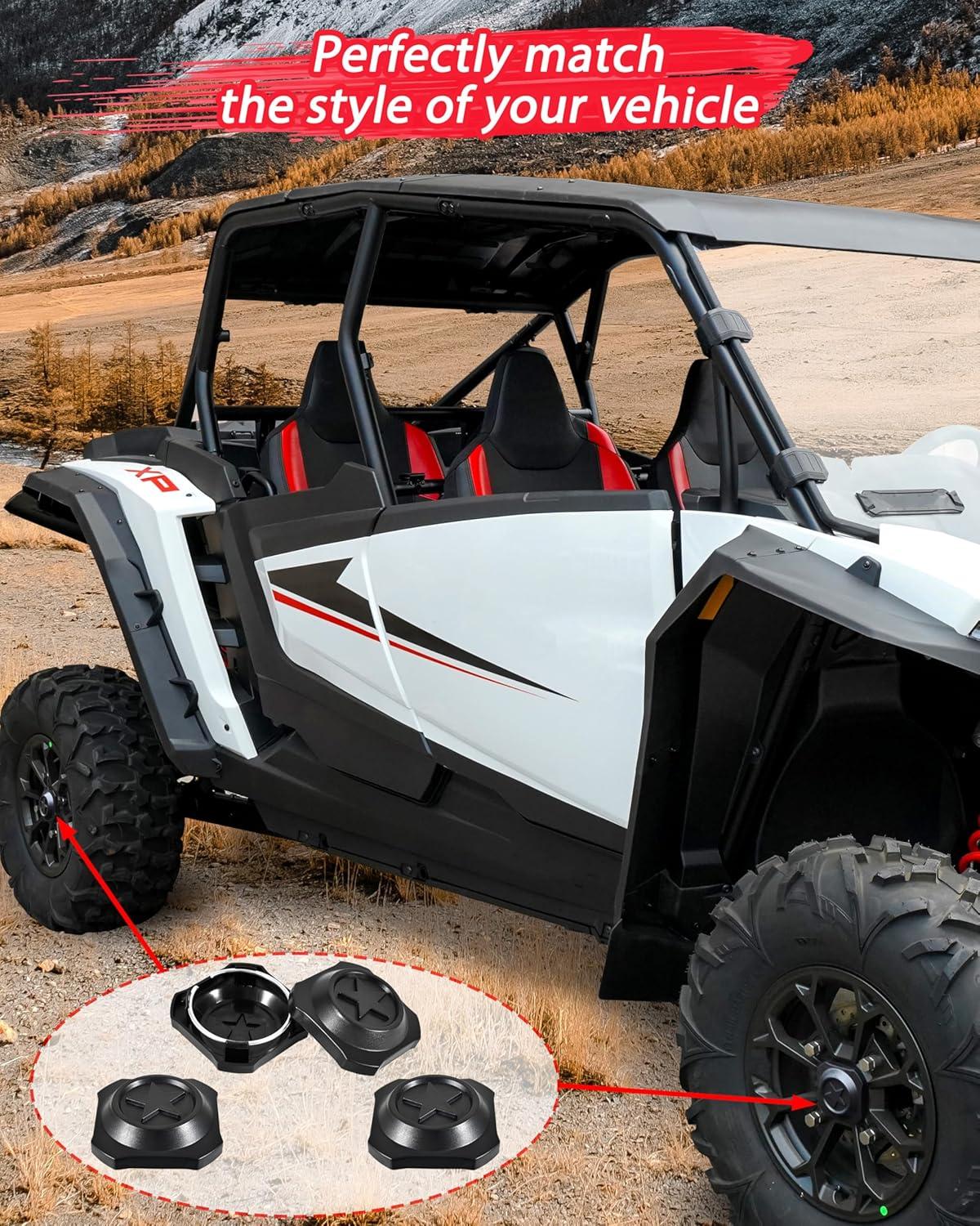 SAUTVS Black Wheel Hub Caps for Polaris RZR XP 1000/XP 4 1000 2024+, Durable PP Material Wheel Rim Cover Center Tire Caps Accessories(4PCS)