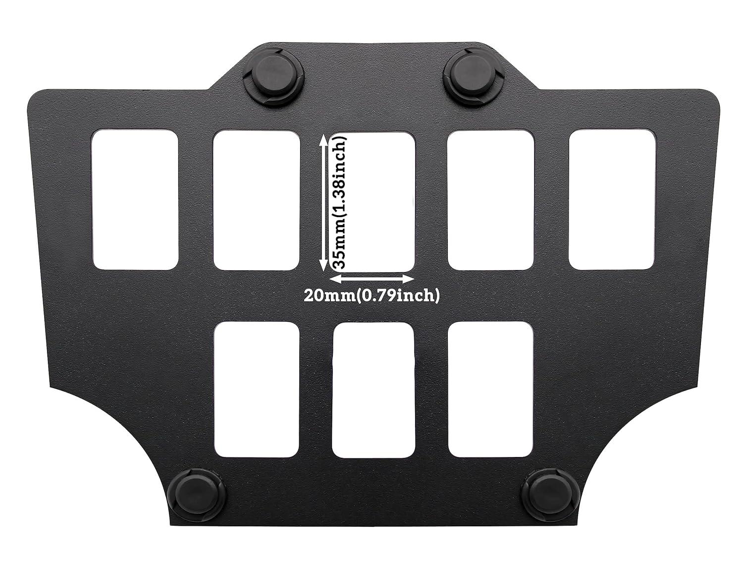 8 additional switch positions for mounting accessory rocker switches, each hole size: 1.38 x 0.79 inch