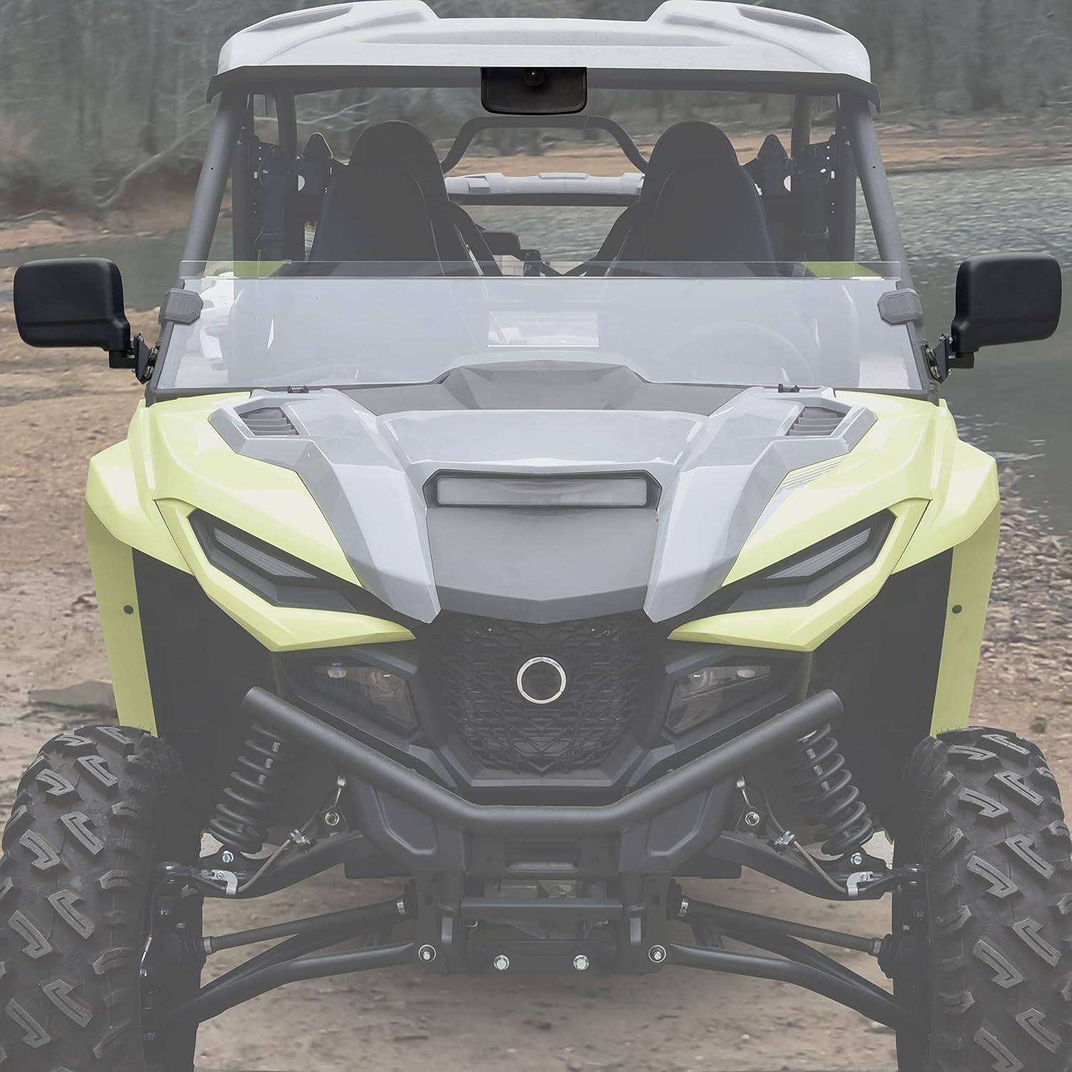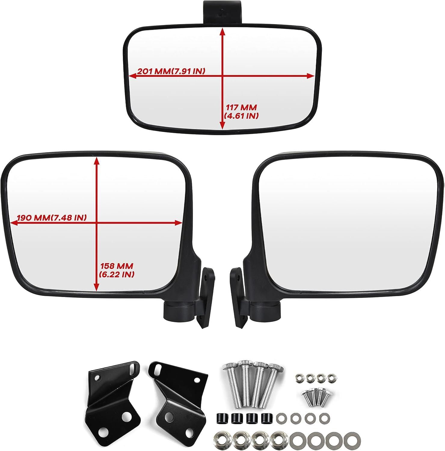 Convex center rear view mirror, give you a wider view of the trail, help you to stay aware of surroundings out on the trails; Install with durable cast aluminum mounts, which ensures the mirror stay attached in off-road adventures