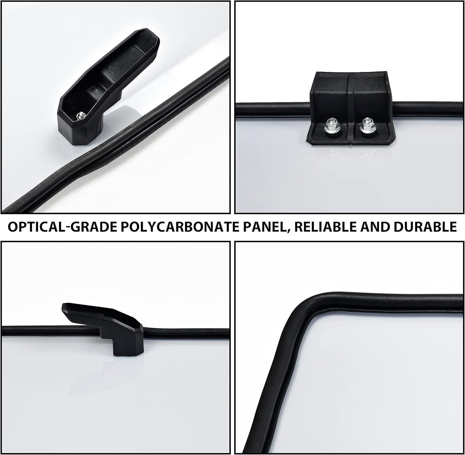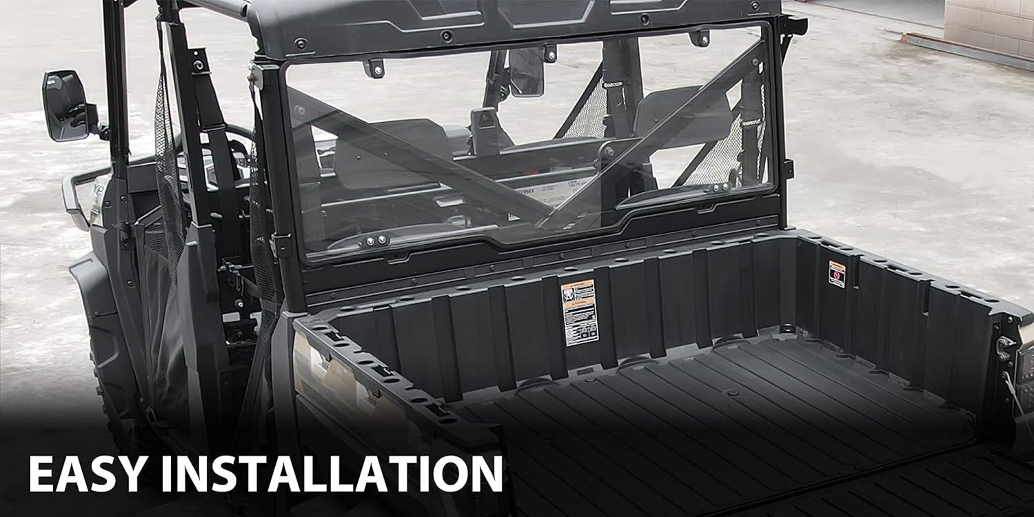 Tool-Free Quick installation: Pre-installed locking clamps enable quick installation/removal; Package include: One piece of rear windshield with all mount hardware and instructions(Please refer to the video in the listing before your installation)