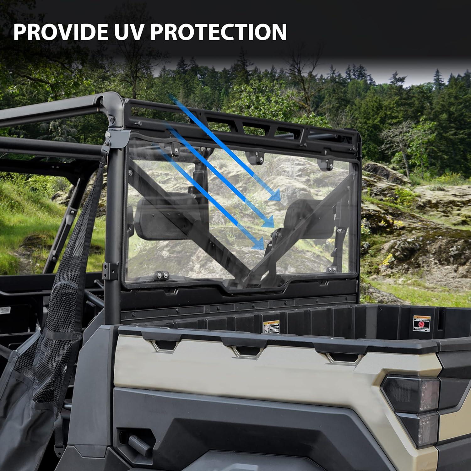 SAUTVS Clear Polycarbonate Rear Windshield Back Window for Polaris Ranger XP 1000/1000/Crew 2017-2025, XP 900/570/Diesel 2013-2025 with All Seal Quick Installation Accessories (Compatible with Roof)(Rear Windshield)