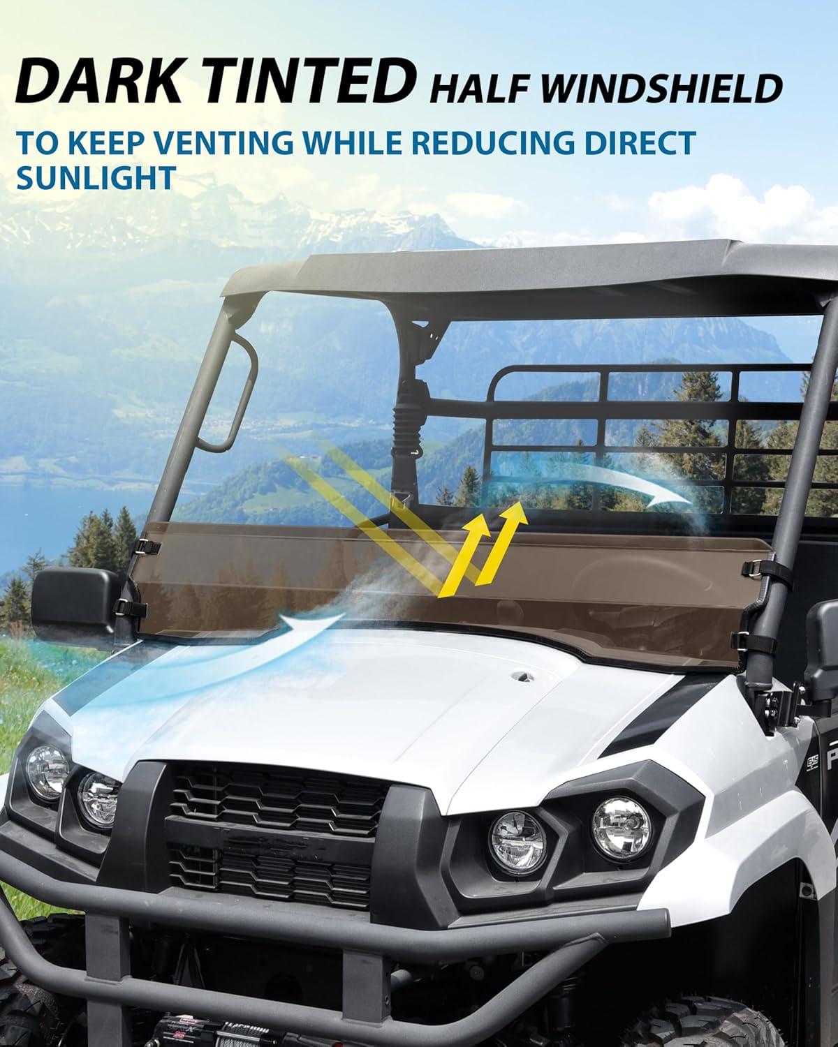 SAUTVS Dark Tinted Front Half Windshield for Kawasaki Mule Pro-MX, Lightly Durable PC Half Windscreen for Kawasaki Mule Pro MX 2019-2026 Accessories