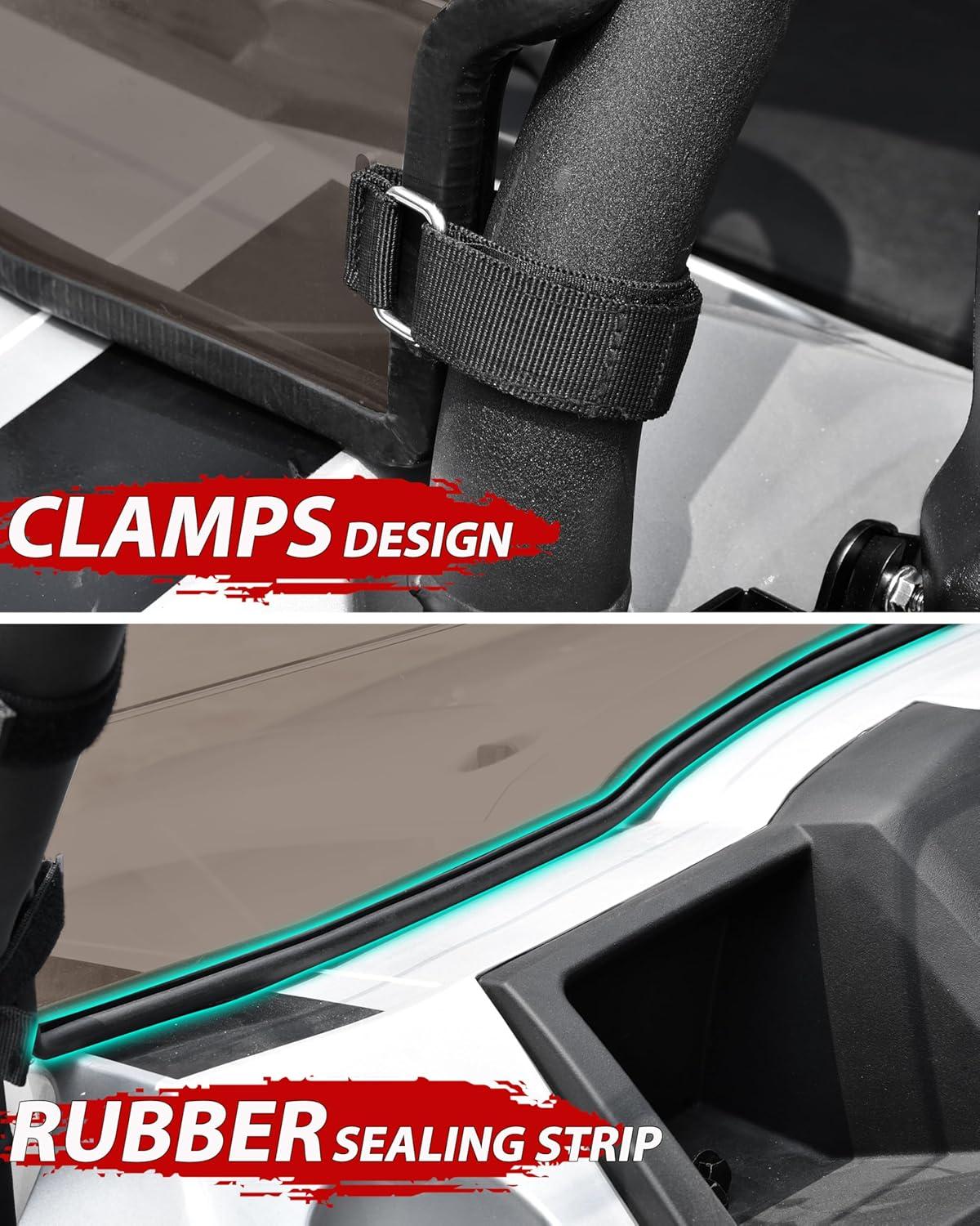 STRICT SEALING STANDARDS: 180 degree gasket seal fits vehicle perfectly; Keep driver and passenger safe while still providing the unenclosed open air ride experience, the no-frame design offers maximum visibility