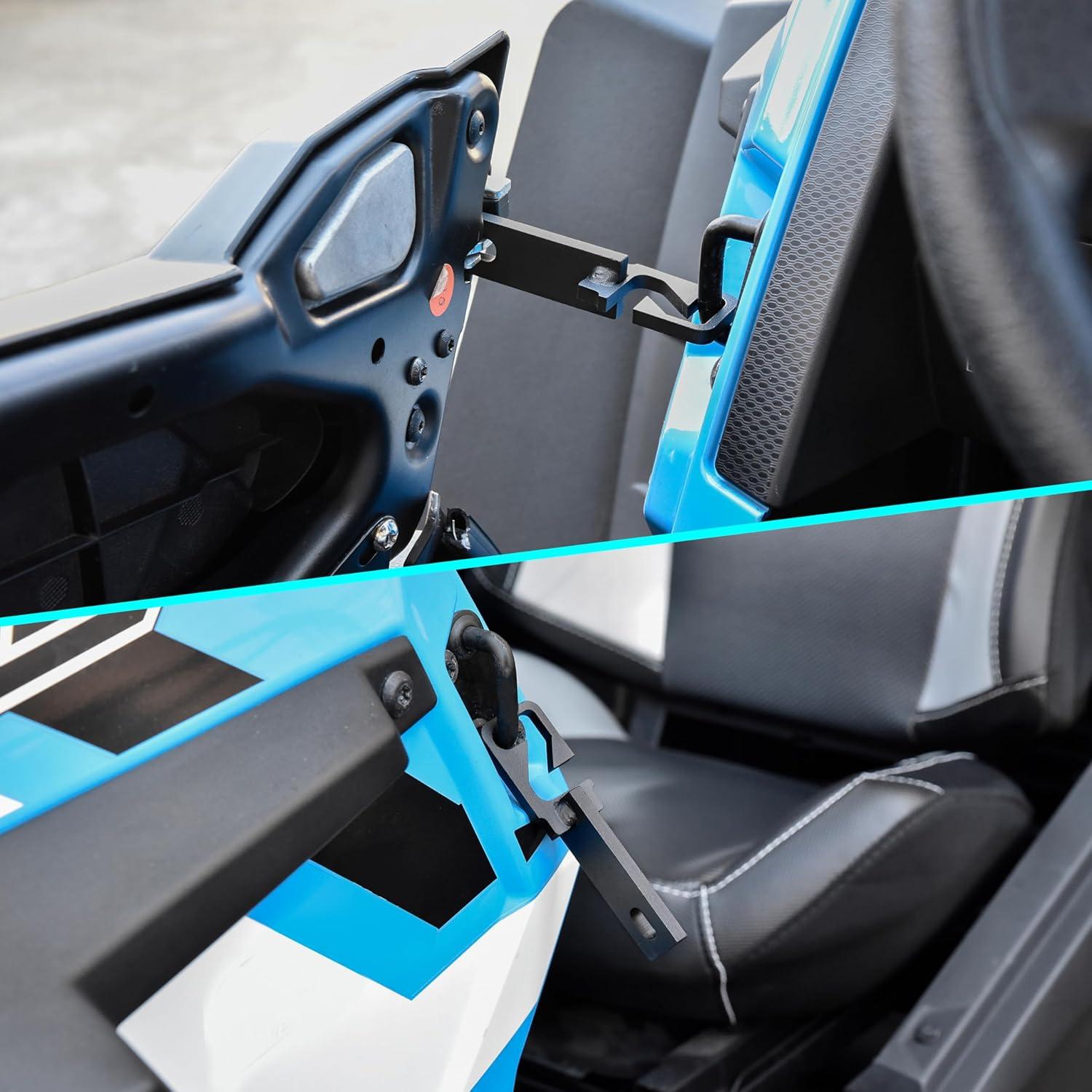 【Easy installation】Hook the hook of the UTV door latch to the cab. Insert the door latch into the vehicle door latch by the hole in the latch. Quick installation without any tools