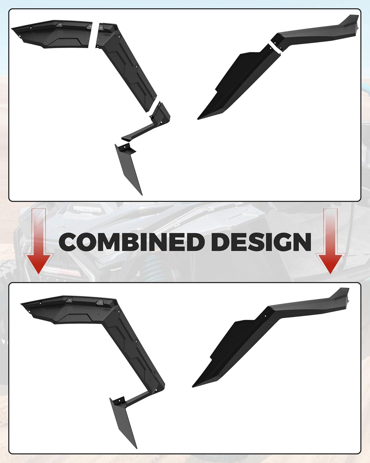 Extended and combined design; Sling mud high and away from your vehicle, block more dust, debris, and water to enter the cab