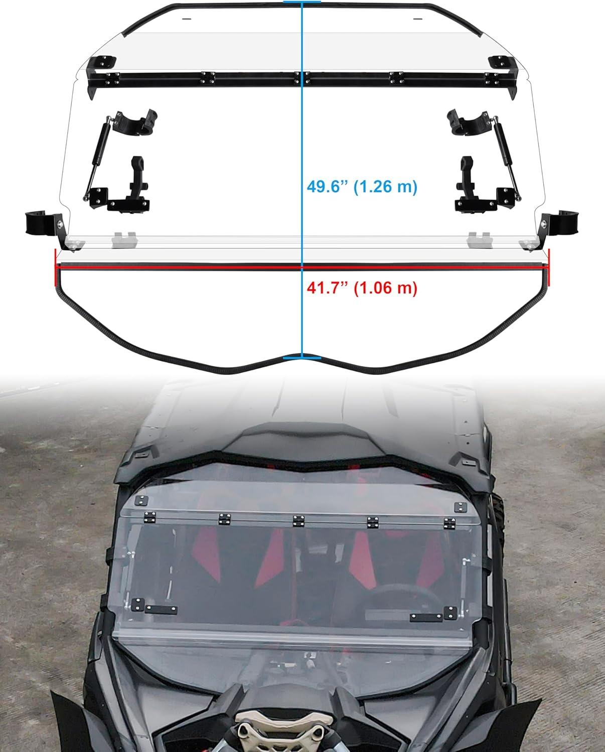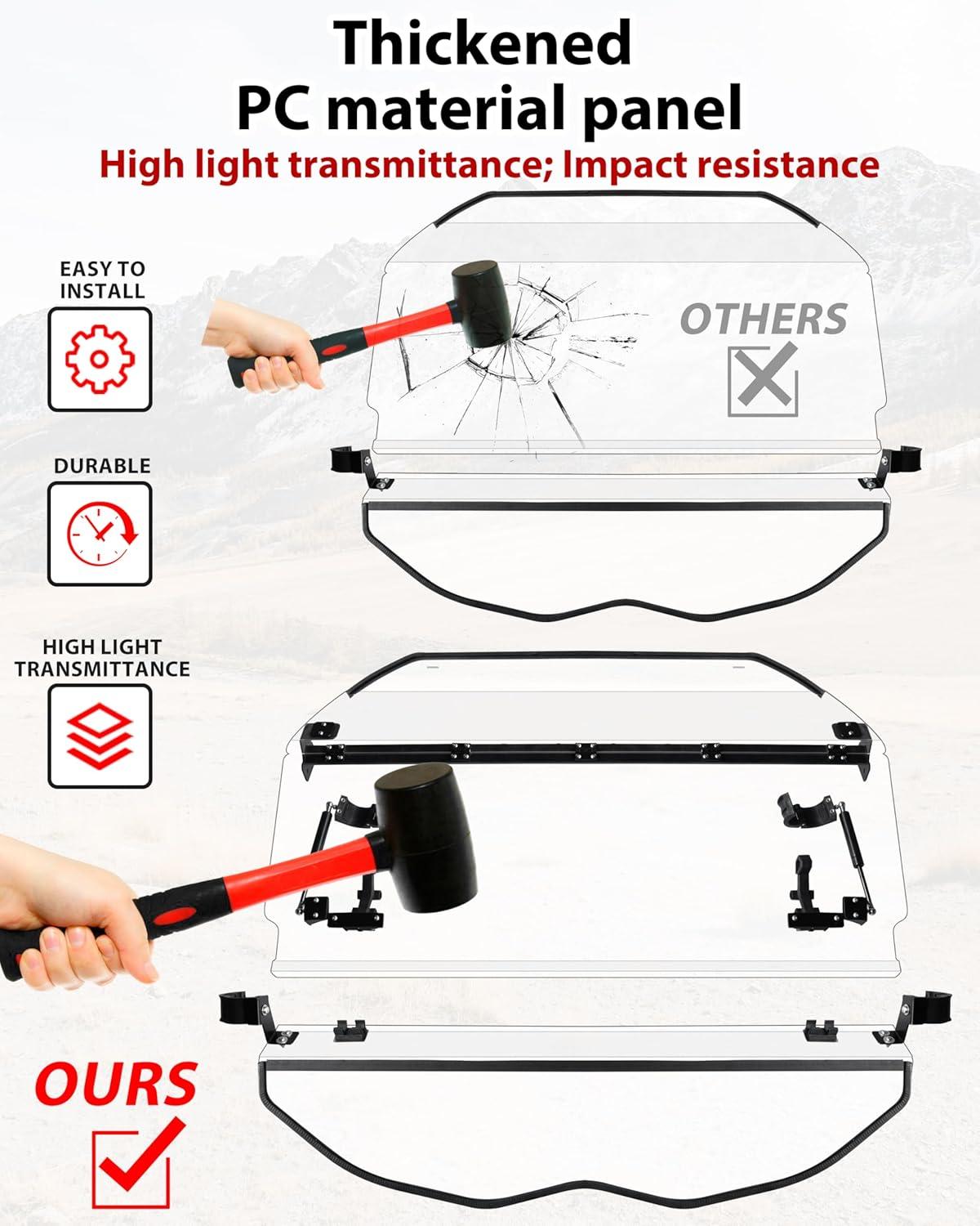PREMIUM POLYCARBONATE PANEL: The windshield is made of reliable and durable 1/5″ polycarbonate panel with hard coat layer, light and strong, and offers maximum visibility and impact resistance, high light transmittance improves driving safety