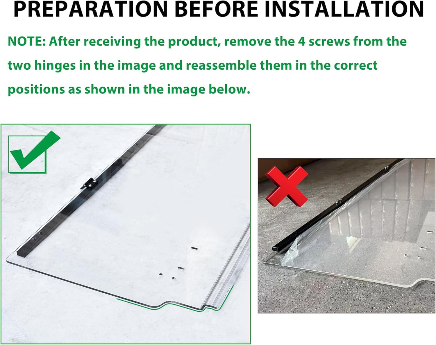 PACKAGE INCLUDES: 1 set of front flip-up windshield and all mounting accessories, installation instruction (Can refer to the instructional video in the listing and the supplied instructions before installation)