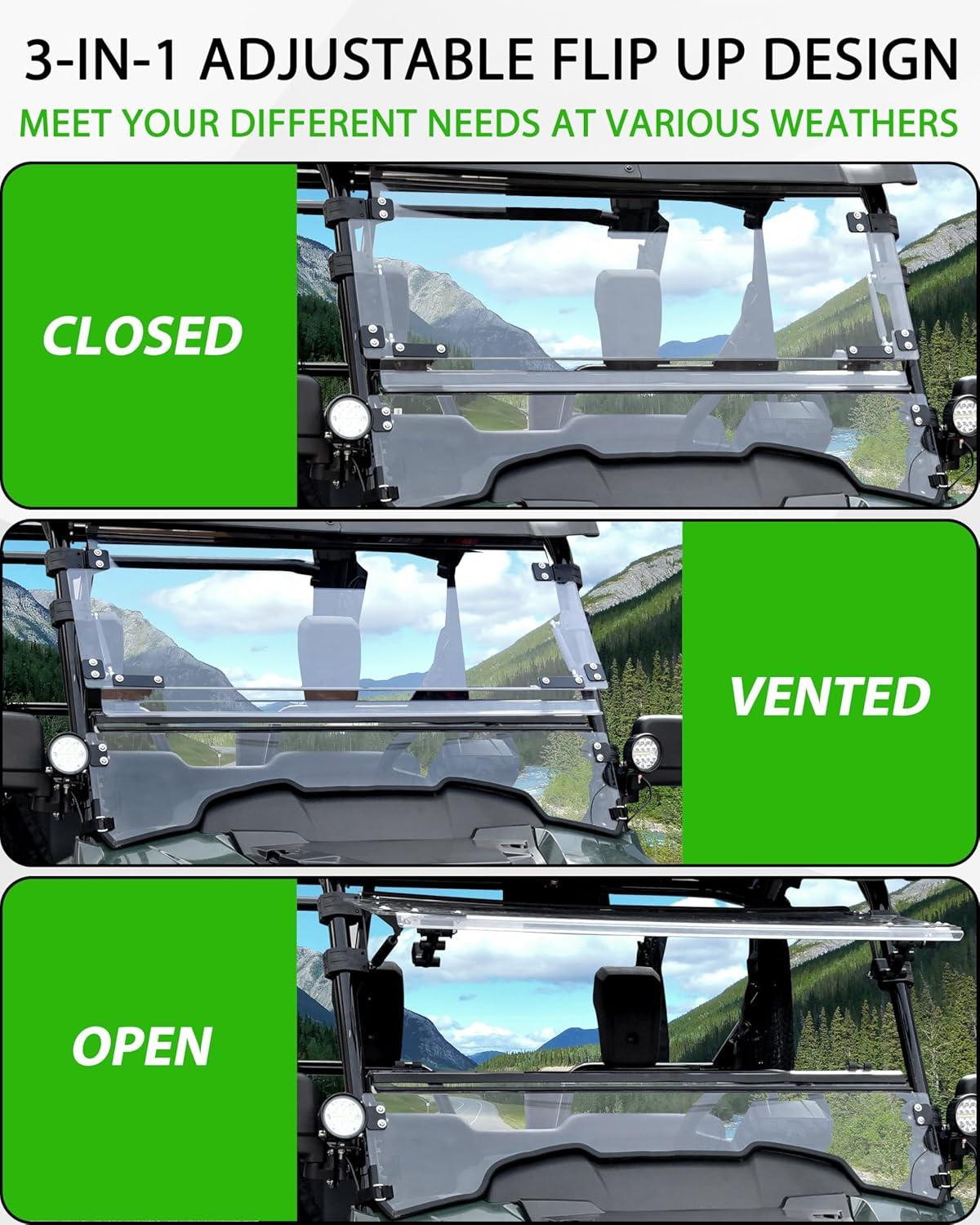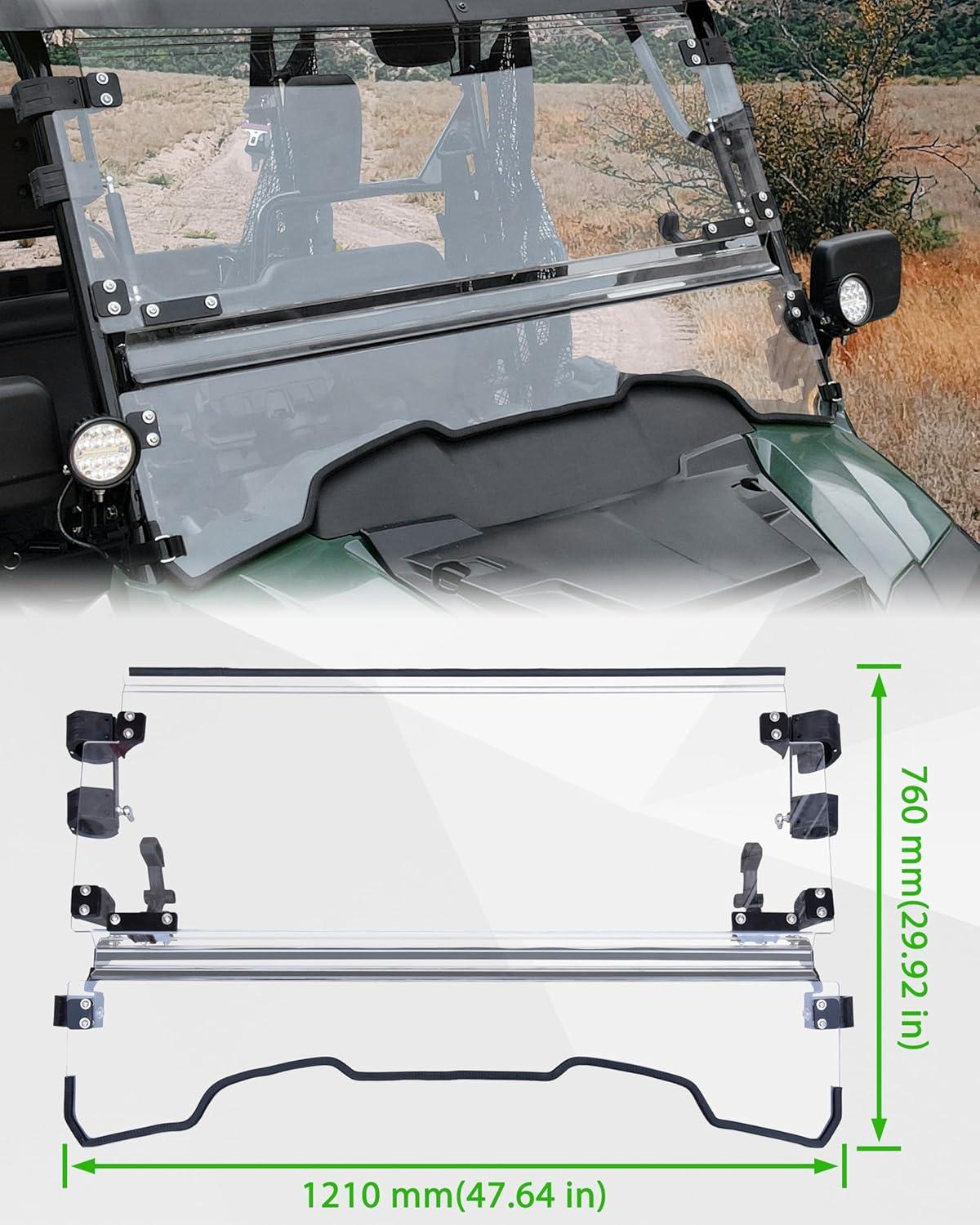 SAUTVS Flip Up Windshield Compatible with Kawasaki Teryx 800 / Teryx4 800 2016-2025, Clear 1/5″ Hard Coated Poly Front Flip Windscreen Accessories, Can be Closed, Vented, or Fully Open
