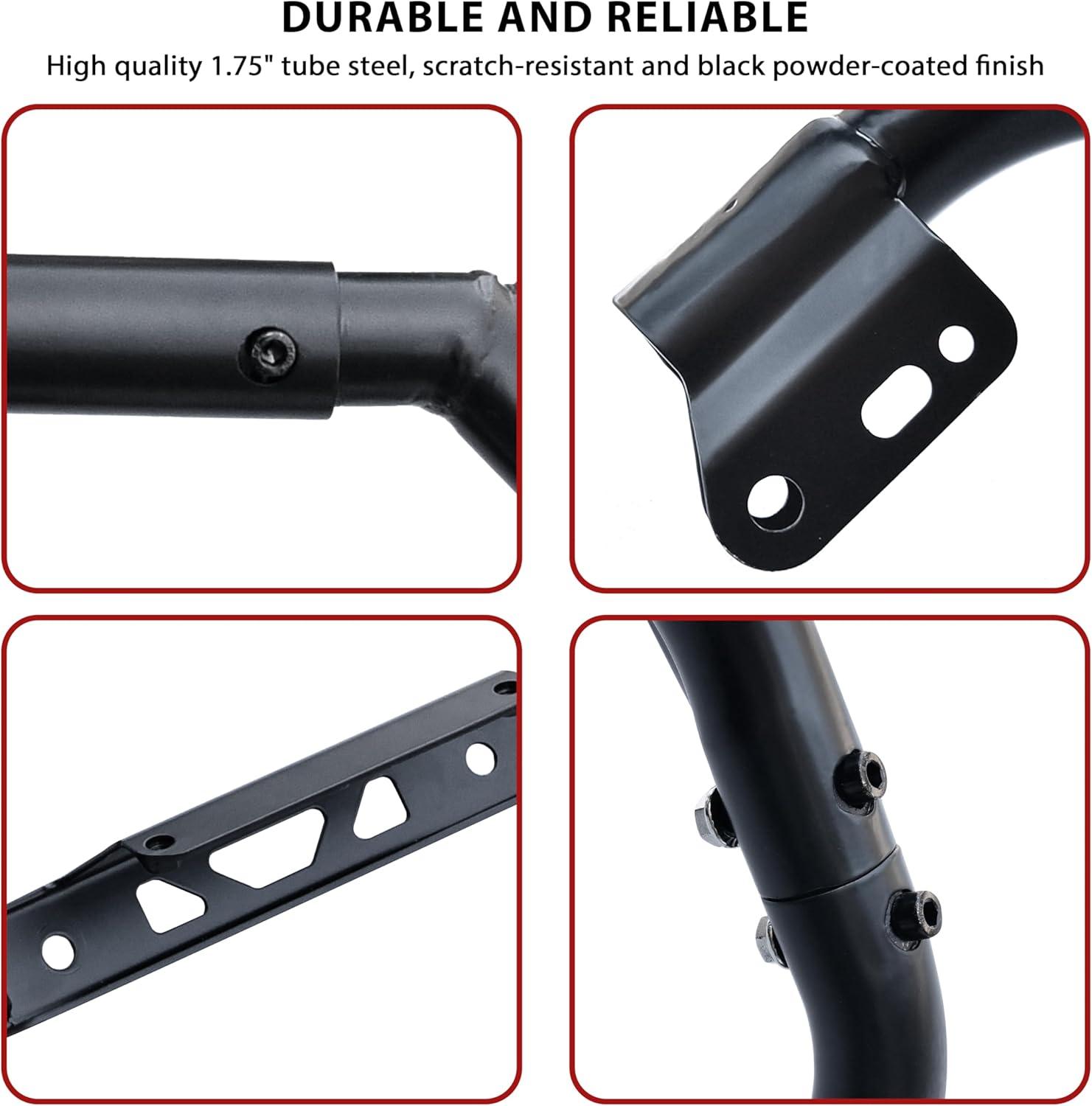 Made of high quality 1.75″ tube steel, scratch-resistant and black powder-coated finish complements the tough look of your RZR