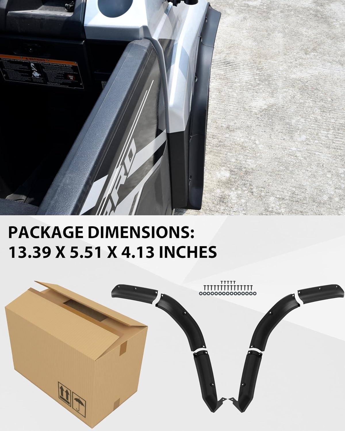 Package Include: 6PCS front fender flares kit with mount hardware, installation instructions; Quick Installation; Please refer to the installation video in the listing page before your installation