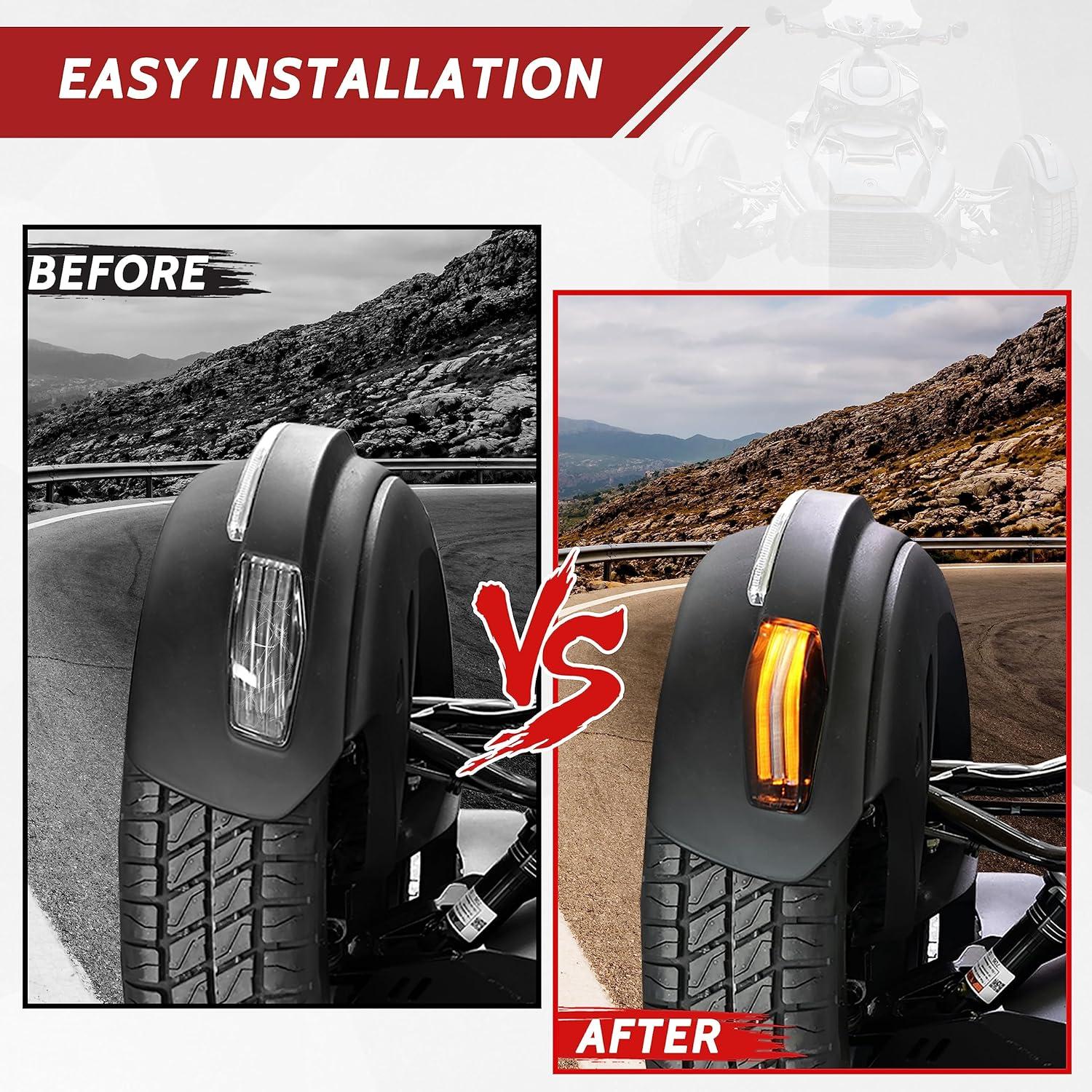 Easy to install, Plug & Play, please refer to the installation video in the listing before your installation; Package include: 2PCS Black Housing Smoked Lens Front Fender LED Lights with hardware, installation instruction