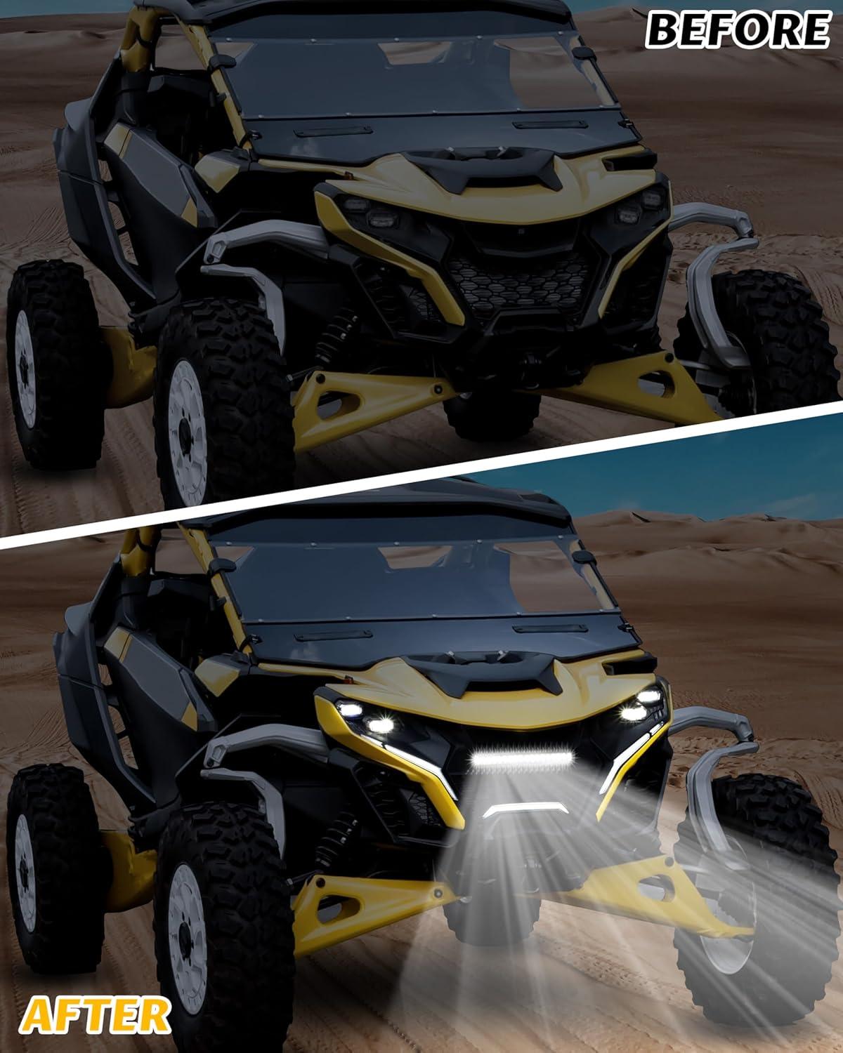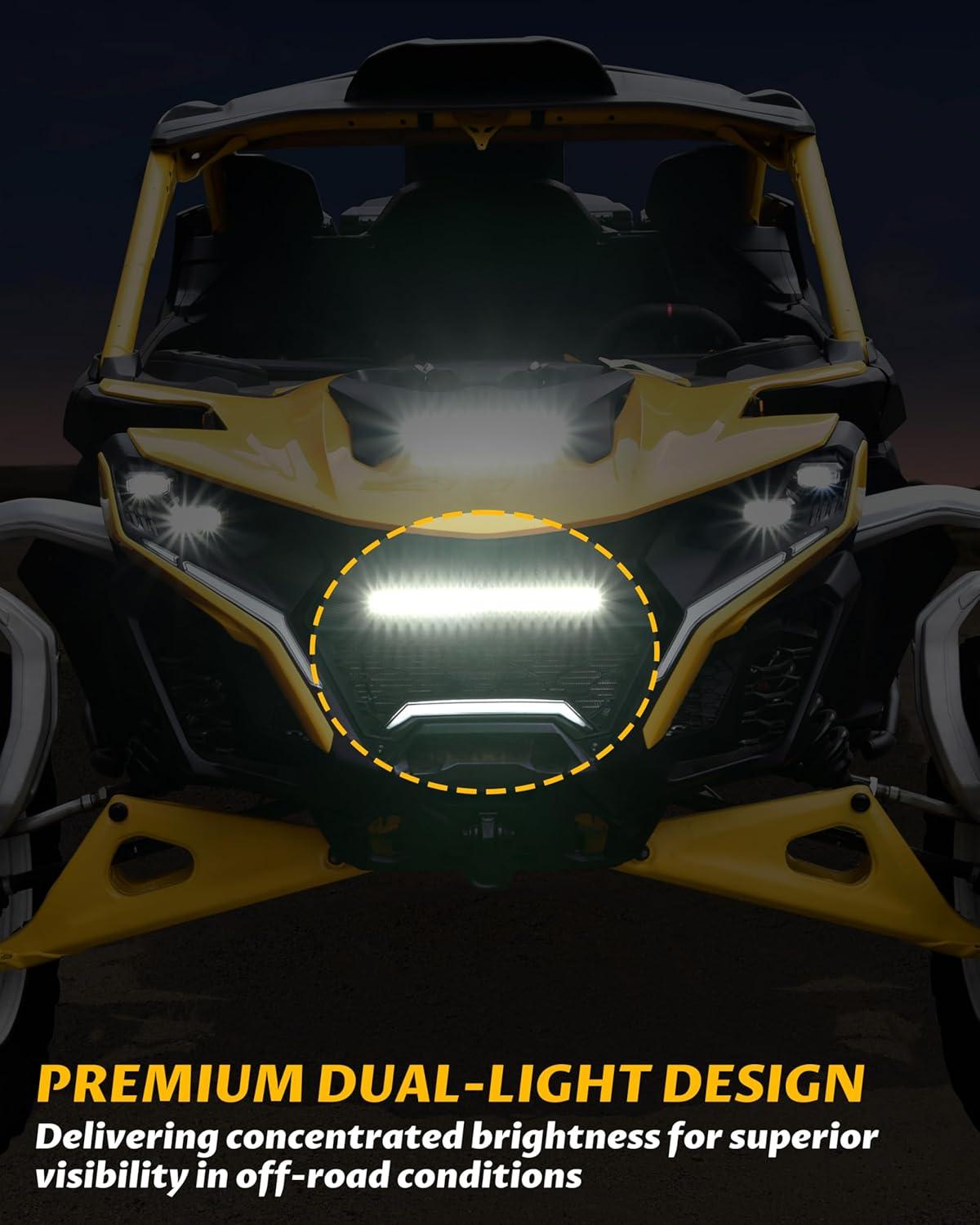 [PREMIUM DUAL LIGHT BAR DESIGN] – Features high-intensity LED light bars with dual-light technology, delivering concentrated brightness for superior visibility in off-road conditions; Perfect for night rides or low-light environments, ensuring safety and clarity on rugged terrains