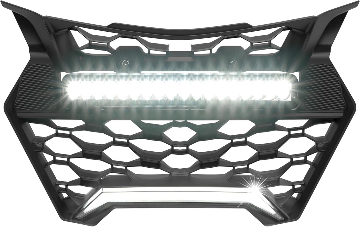 SAUTVS Front Grille with LED Light Bars for Can-Am Maverick R & R MAX X RS 2024+ Models, IP67 Waterproof Mesh Grill with High-Brightness Dual Lights