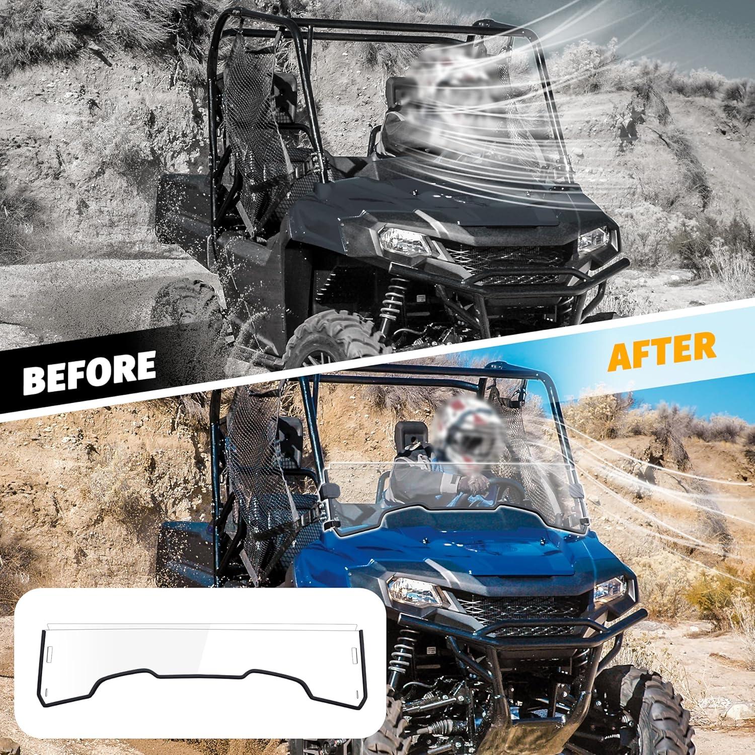 [INNOVATIVE MATERIALS]-The half windsheld is made of high quality 1/5″ polycarbonate panel, light and strong, makes you comfortable when driving in any season
