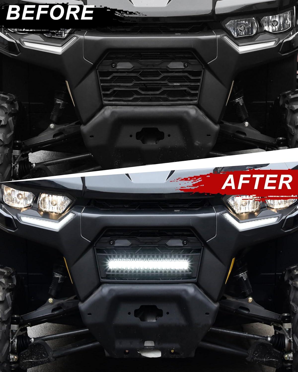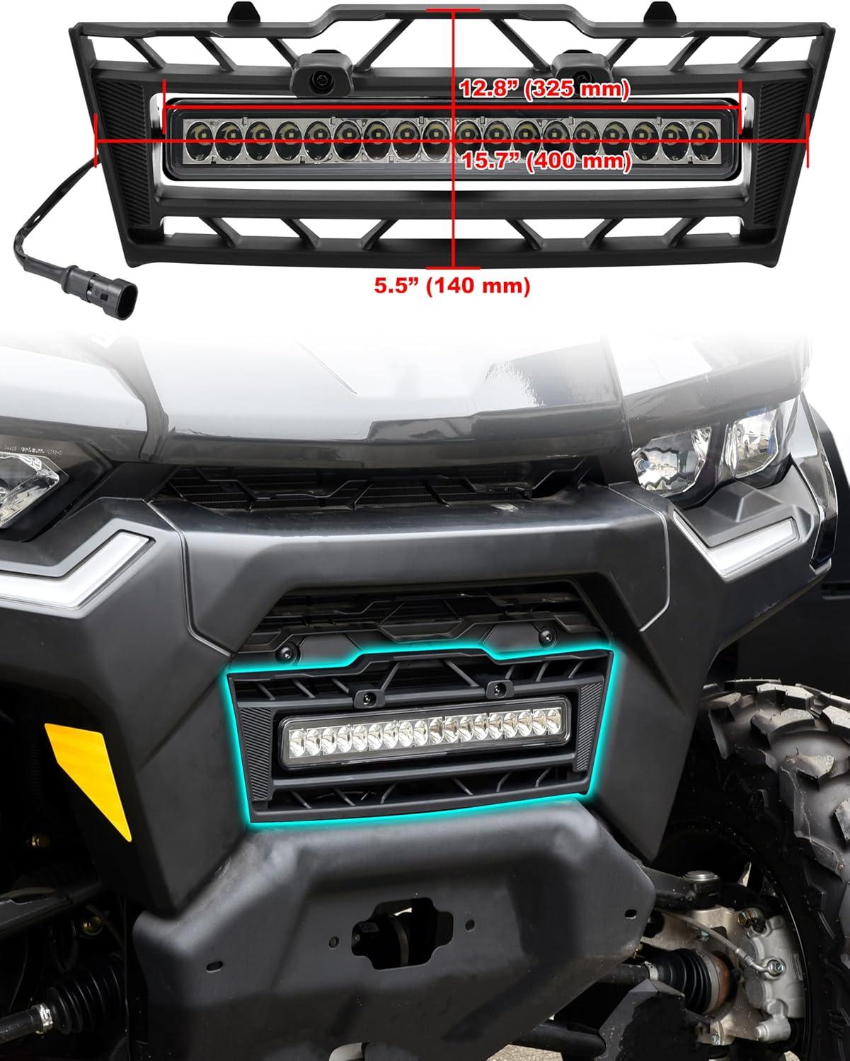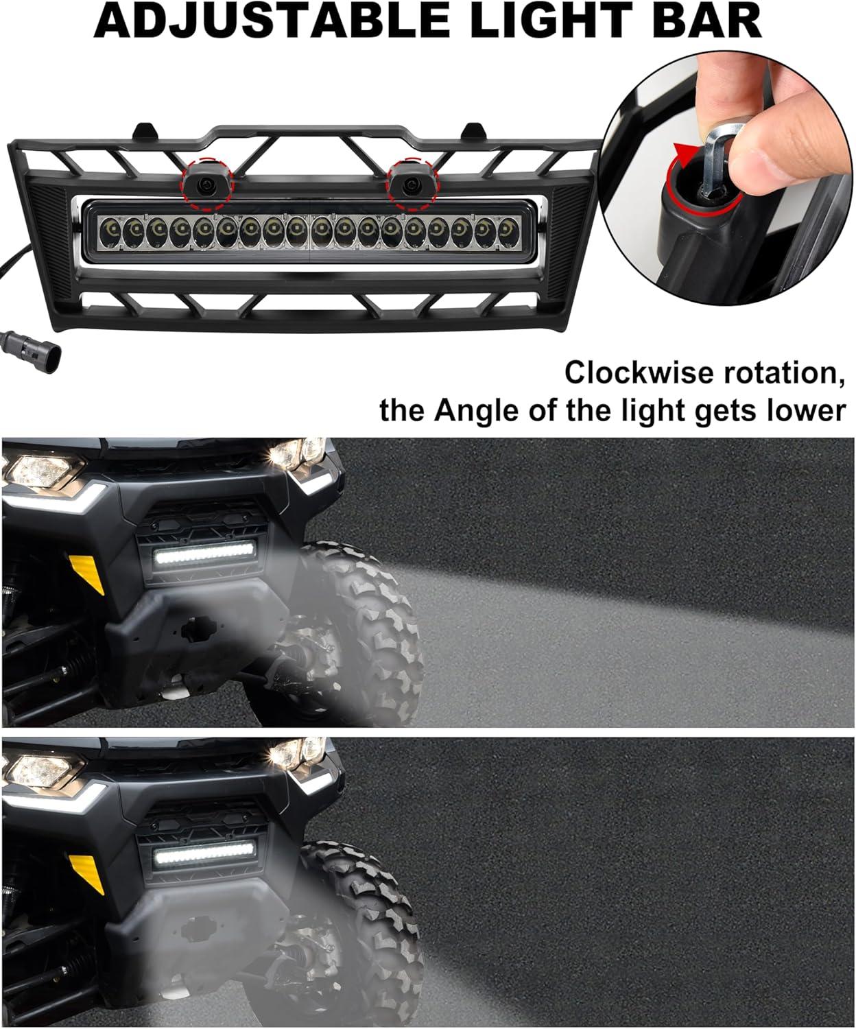 SAUTVS Front Mesh Grille with LED Light for Can-Am Defender, Front Bumper Mesh Grill with Adjustable LED Light Bar for Can-Am Defender MAX HD5 HD7 HD8 HD9 HD10 2020-2025 Accessories