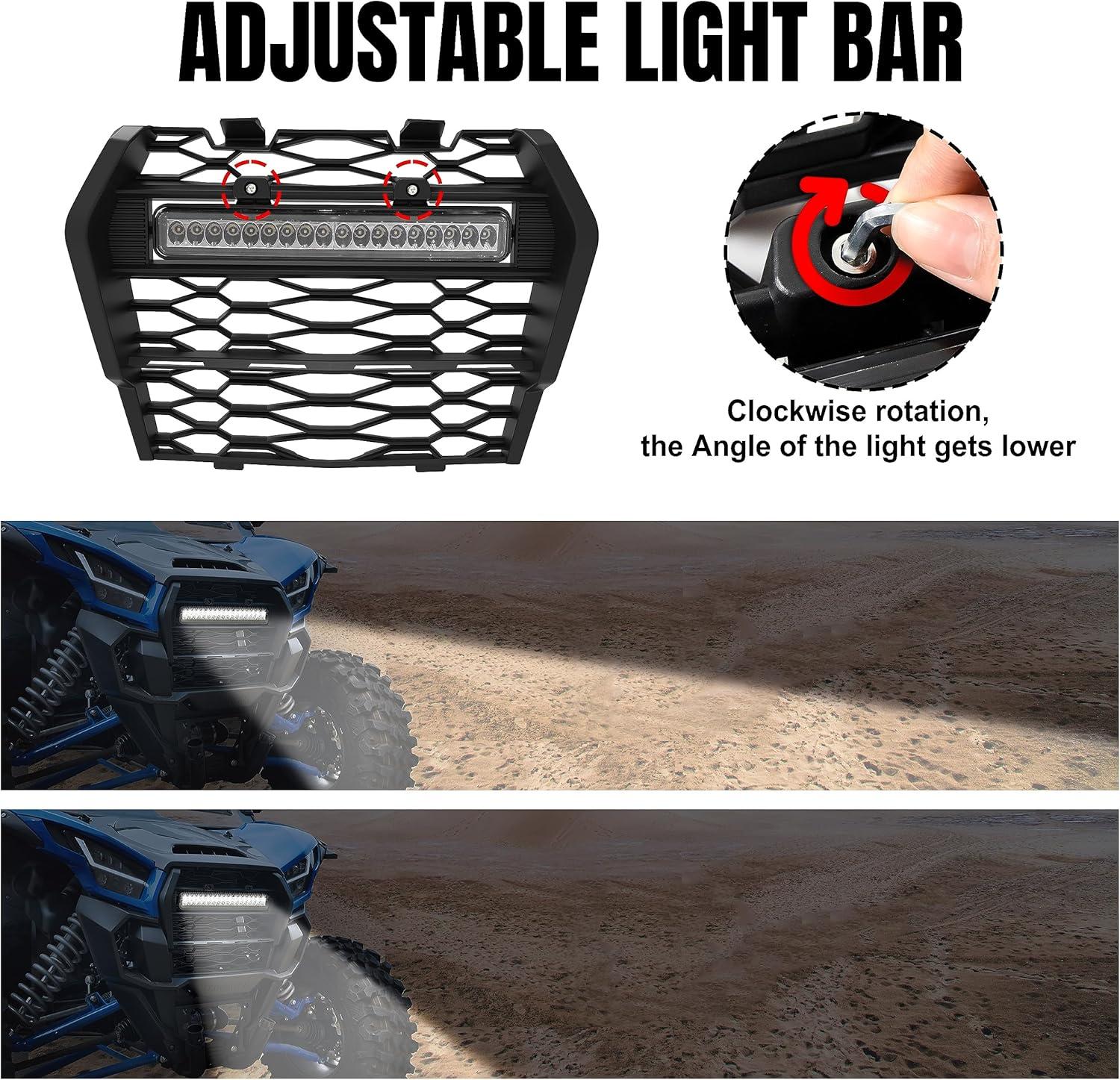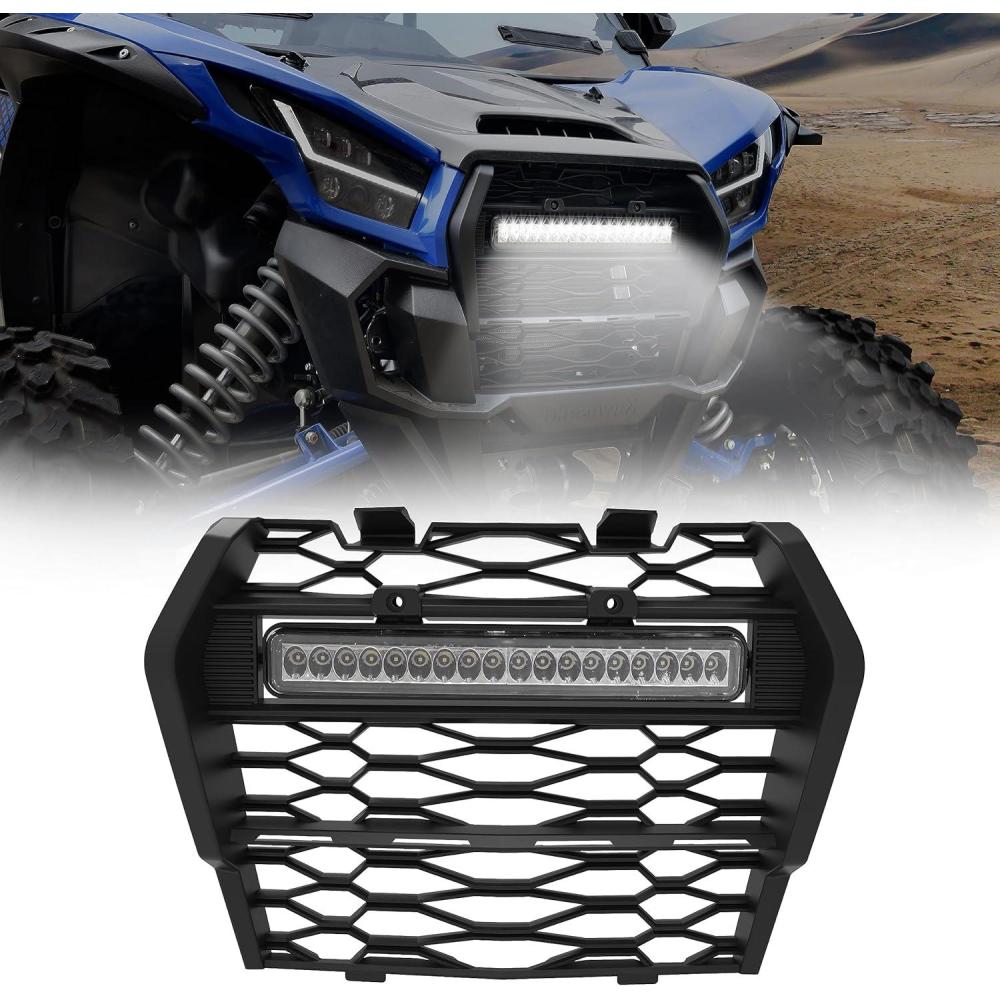 SAUTVS Front Mesh Grille with LED Light for Kawasaki Teryx KRX 1000 20-25, Front Bumper Mesh Grill with Adjustable LED Light Bar for Kawasaki Teryx KRX KRX4 1000 2020-2025 Accessories (1PC)