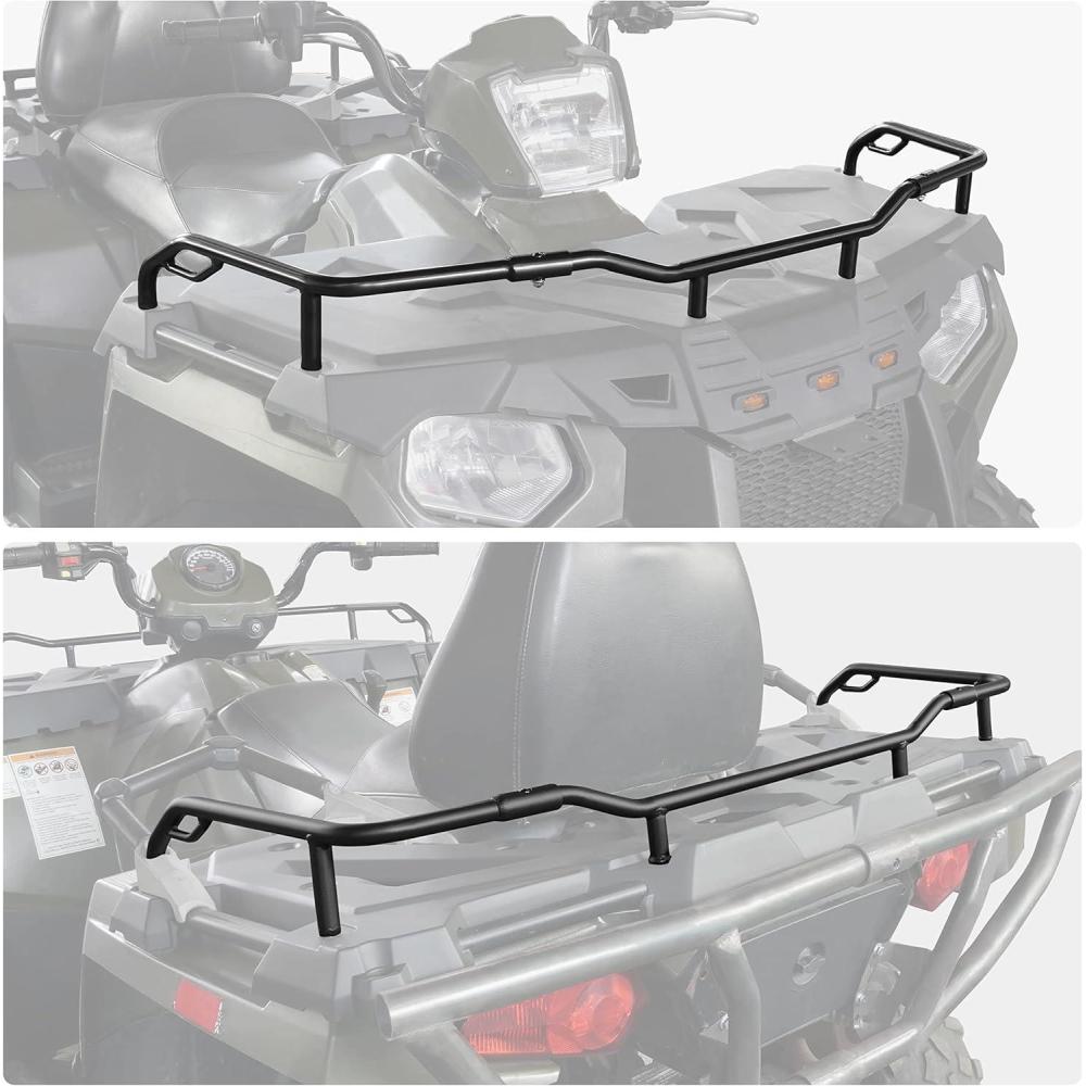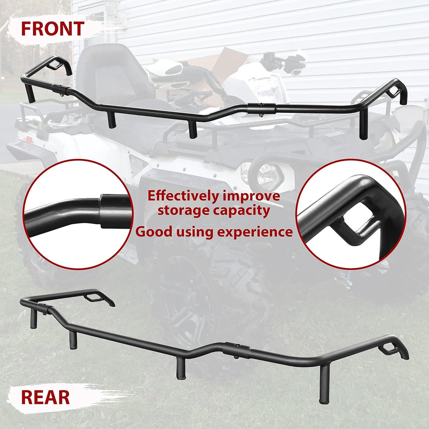 It is made of high-quality heavy-duty steel tube, which increases the loading capacity, and adds additional storage space on the front and rear rack. Scratch-resistant and black powder-coated finish shows the aggressive look of your Sportsman.