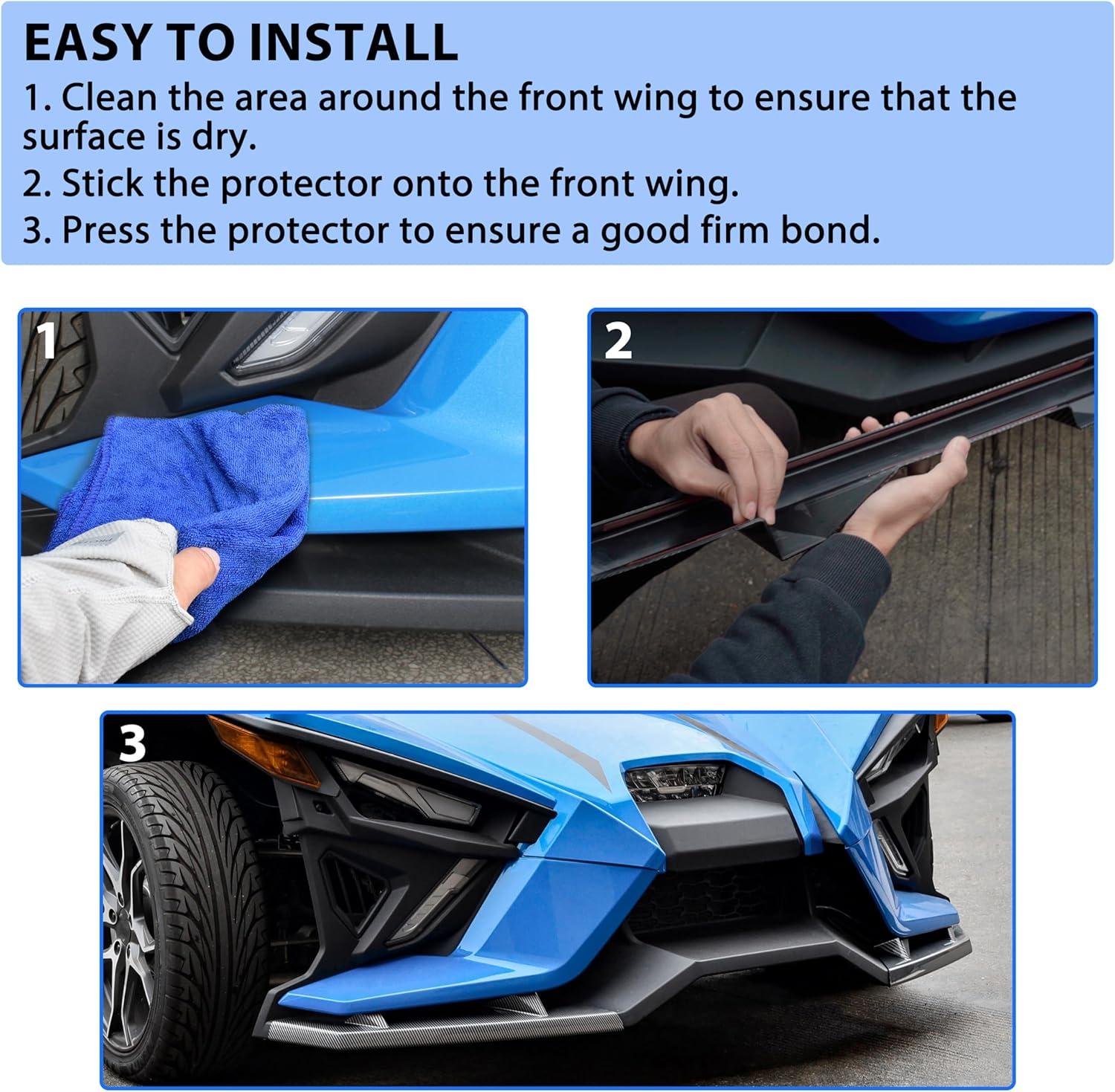 EASY INSTALLATION: No cutting and drilling required. Cleaning surface and wait for it to dry before installation, tear off the double-sided tape on the back of the front wing protector and paste it in the corresponding position, and press it a few minutes