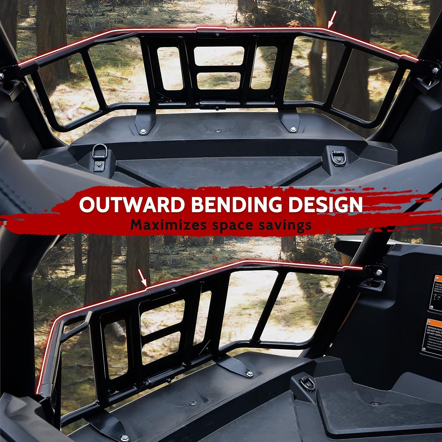 Outward bending design maximizes space savings, increase the loading capacity of the cargo, the reinforced structure makes your trip safer and more convenient; Seamlessly mounts to your stock vehicle by using extension anchor technology, complementing the tough look of your Talon and getting you into off-road mode faster