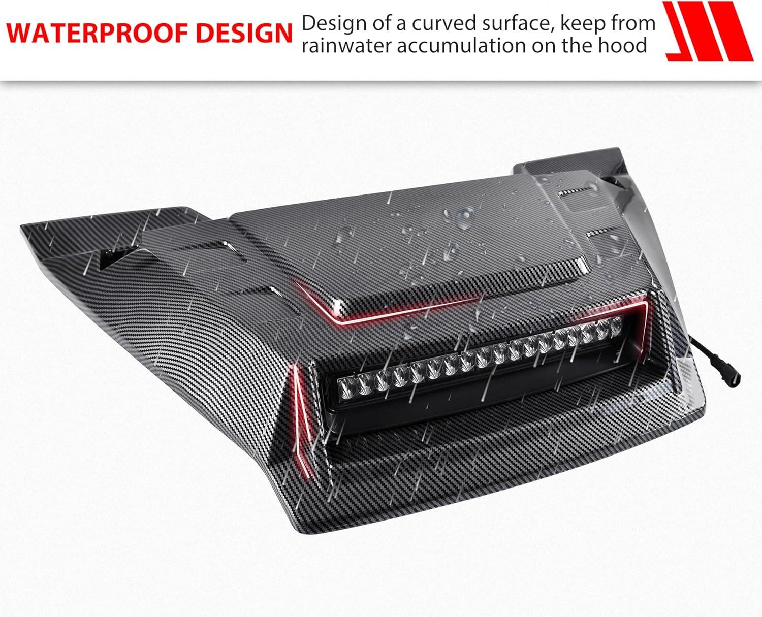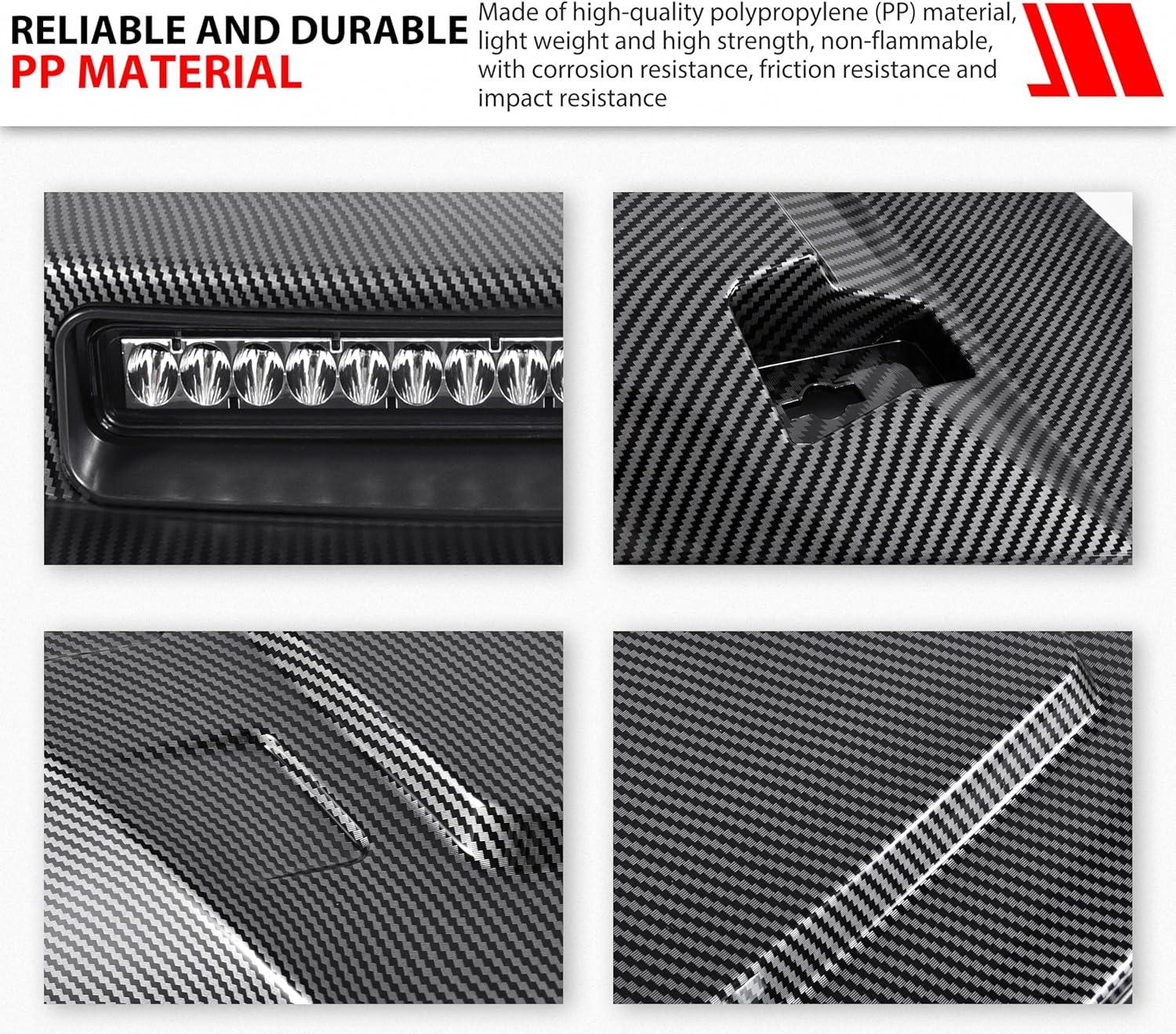 Cool appearance: There is a certain curvature on this hood surface, aerodynamic design and carbon fiber pattern match your vehicle perfectly, make your vehicle stand out in the crowd, light up the trail at dusk and night, escort your driving trip