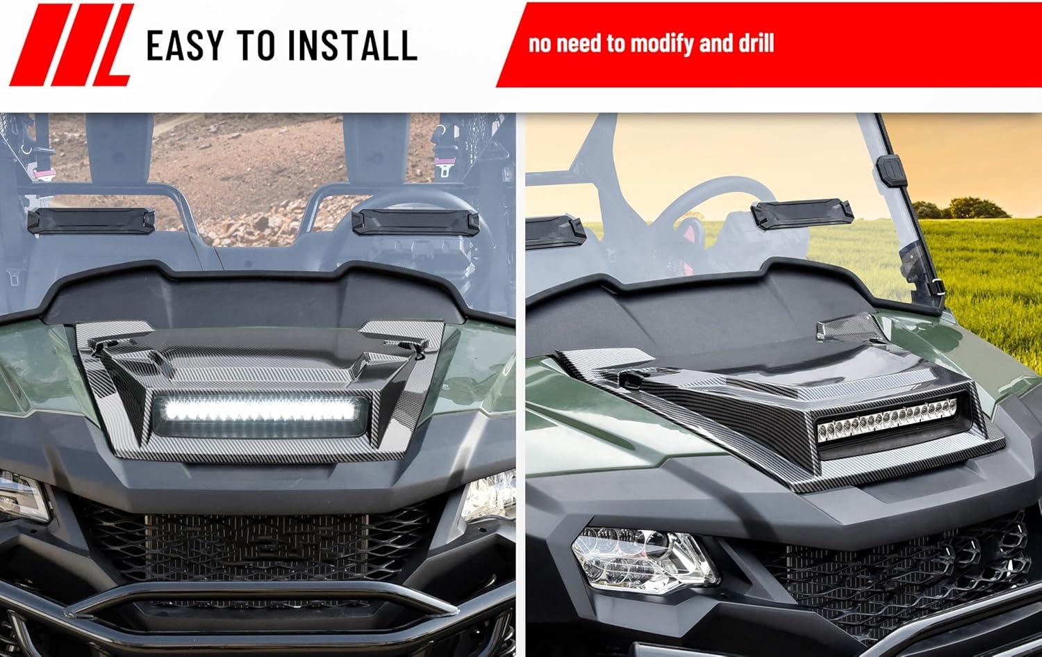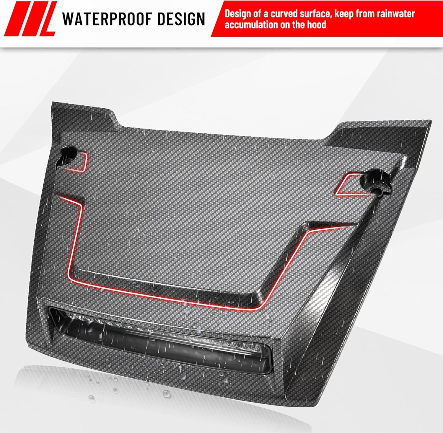Package & Easy Installation: Package include: 1pc carbon fiber pattern hood scoop with LED Spotlight; Designed for quick and hassle-free installation; No drill; No modification; NOTE: It requires to use the vehicle's original hood clips