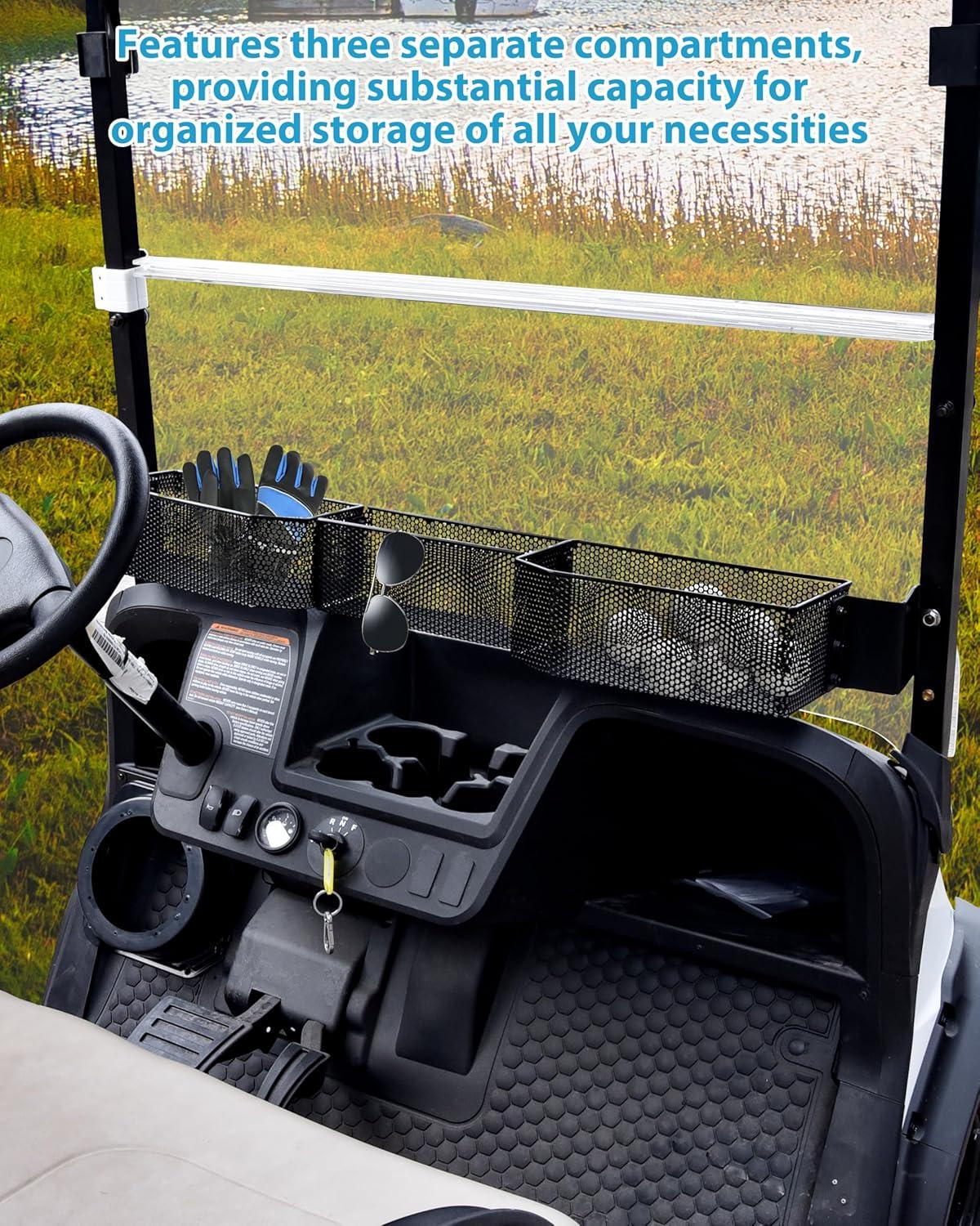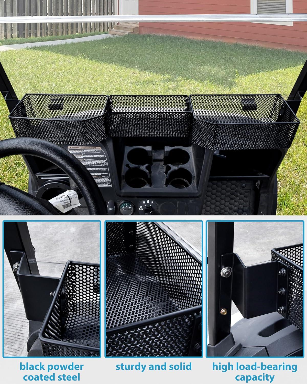 Compartmentalized Design: With a 3-independent-compartment design, this basket solves traditional “mixed storage” issues. It offers sufficient, organized space for small items like keys, umbrellas, water bottles, and golf rangefinders, enabling easy access