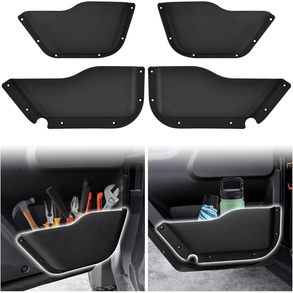Easy Installation: Easy to install(Please refer to the installation video in the listing before your installation); Package include: Four Pieces (front and rear) of Door Pockets with mount hardware and installation instuction