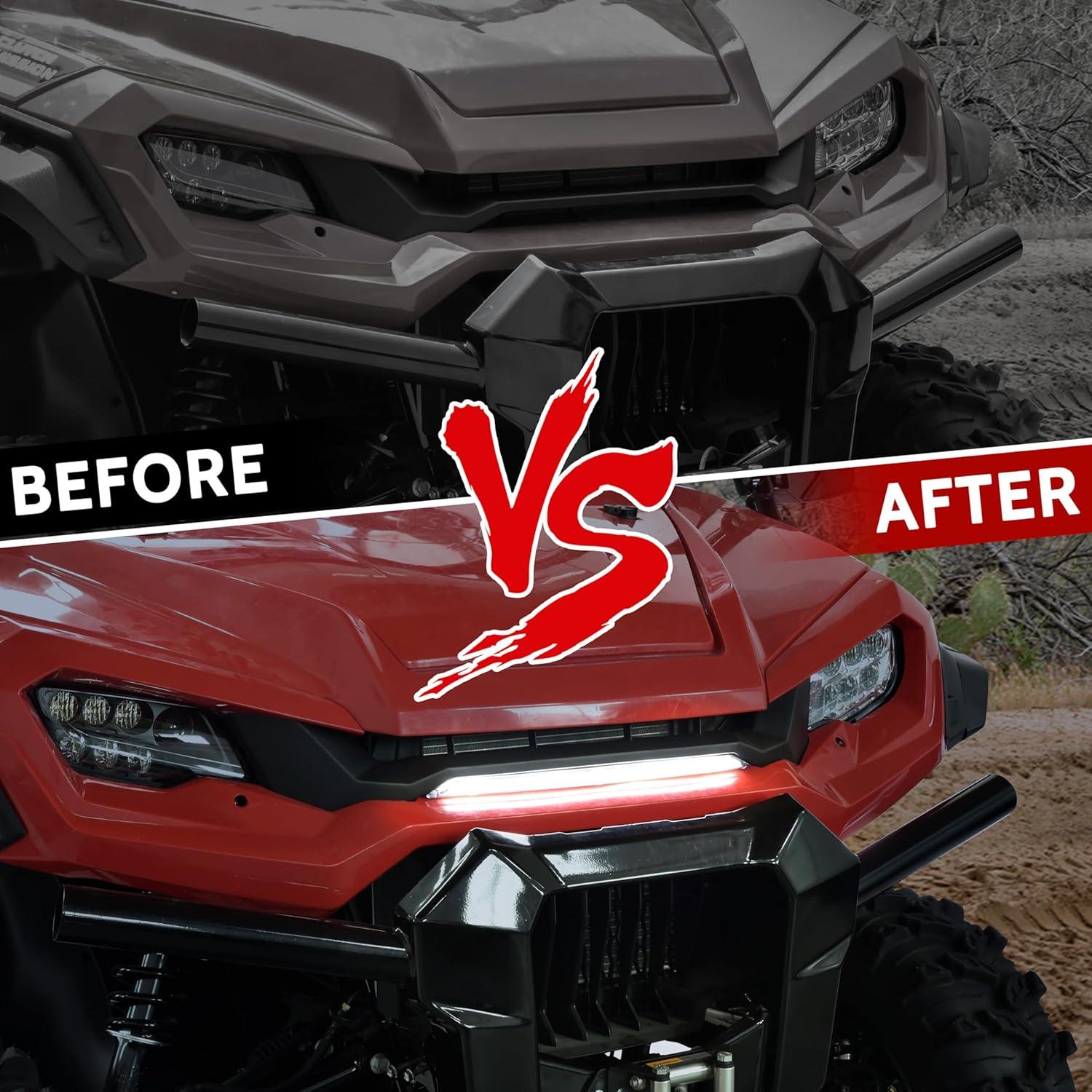 The size of grill light is specially designed to match the front mesh perfect and no gap exists. Stylish and cool looks make your vehicle stand out in the crowd. Let you boldly announce your presence on the trails