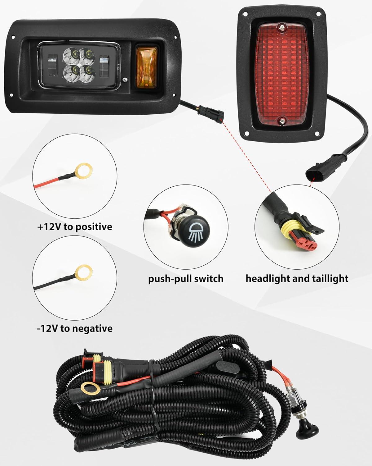 Package Include: One pair of LED headlight, One pair of taillight, One set of wiring harness, mounting hardware and installation instructions; Professional installation is highly recommend; Piease refer to the installation manual