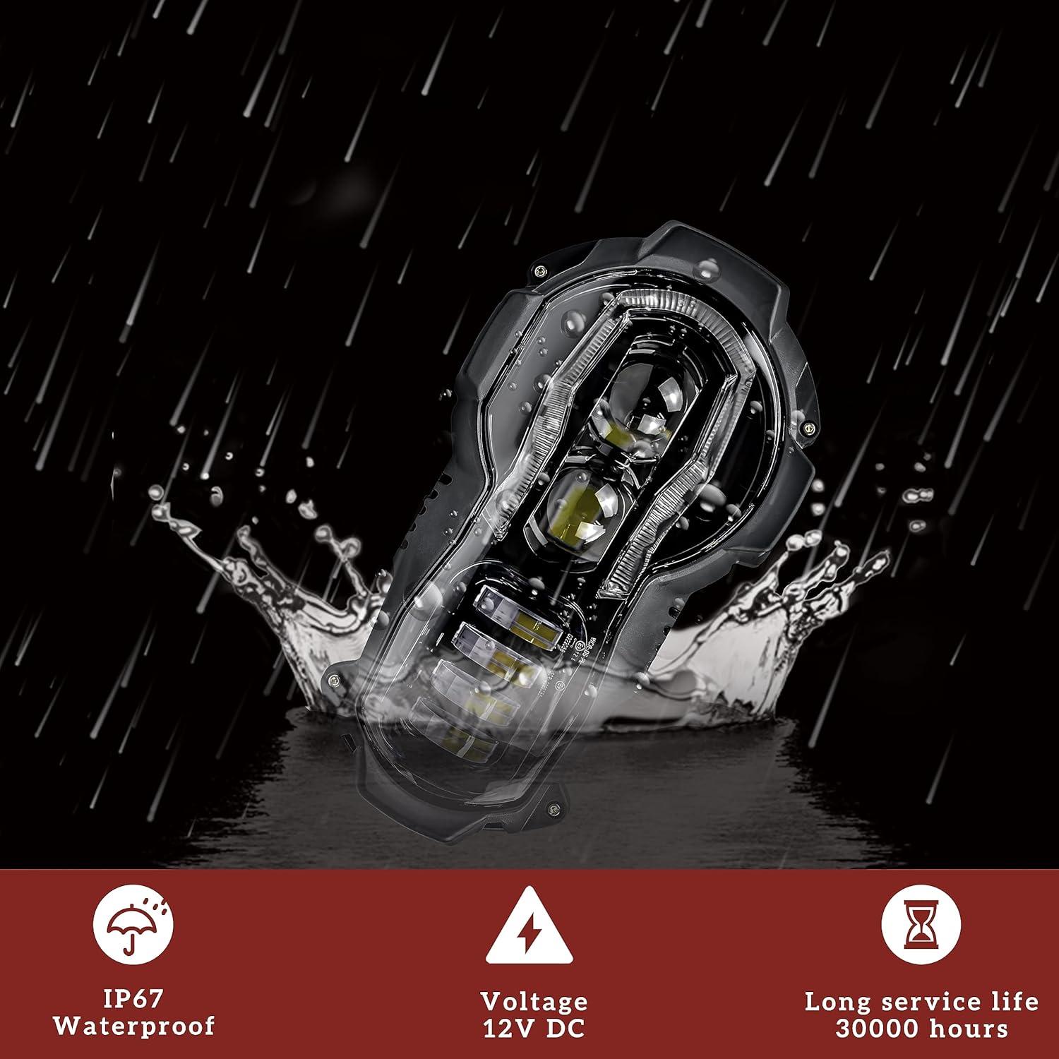 Brighter than halogen lights, reaching 3600 Lumens; Streamlined design, match your motorcycle perfectly, and make your motorcycle outstand in the crowd