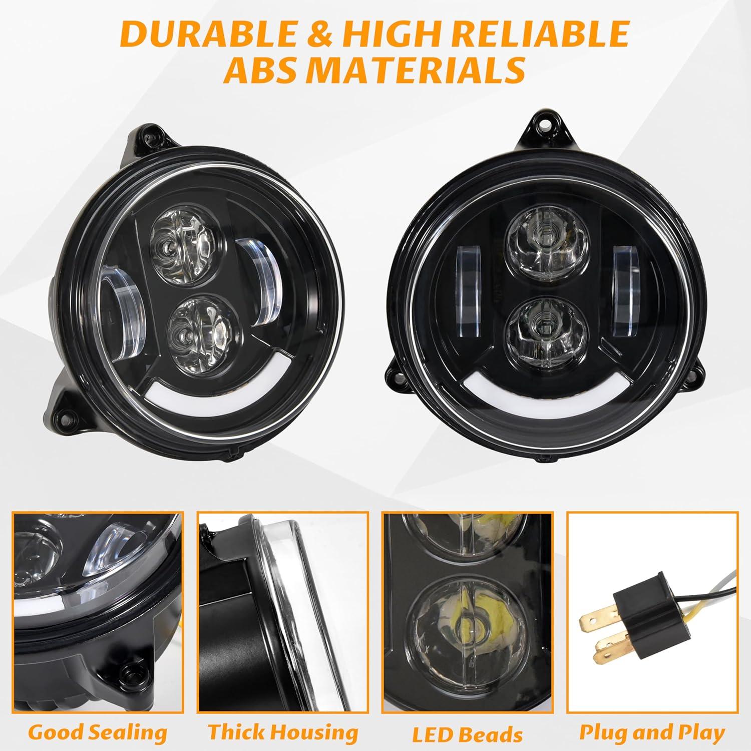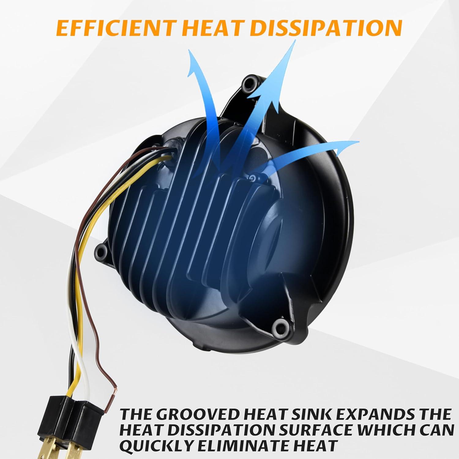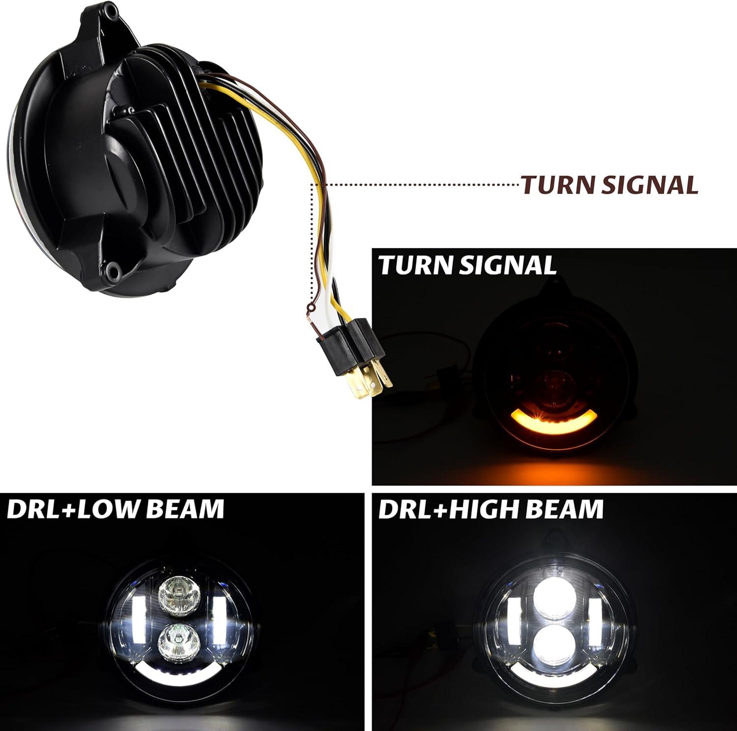 Built-in high-quality LED beads, energy saving and brighter than halogen lights, the illumination is reaching to 2500 Lumens. Different light source modes, DRL with low beam and high beam, turn signal, meet your different needs. Die-cast aluminum housing, advanced air duct design, grooved heat sink, fast heat dissipation.