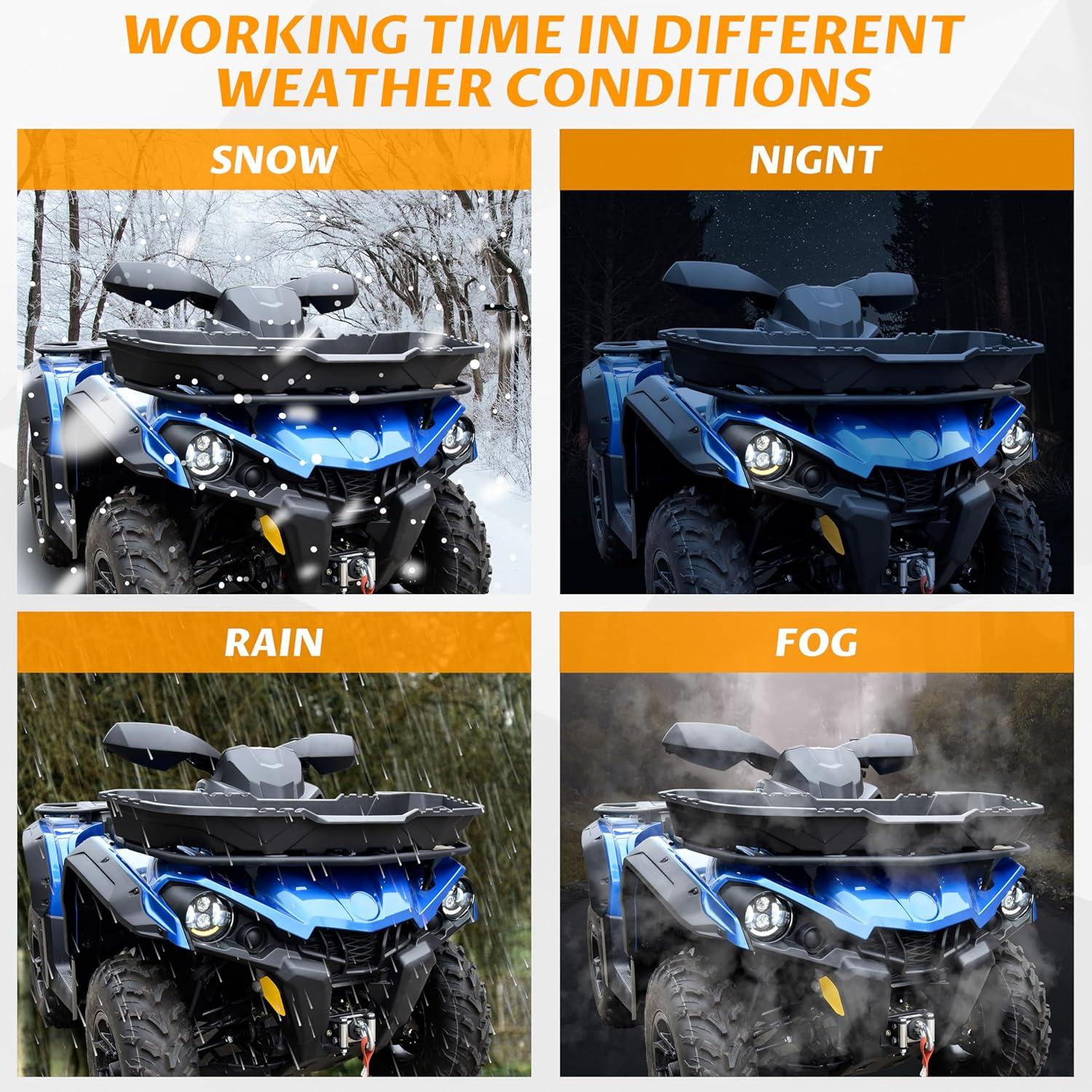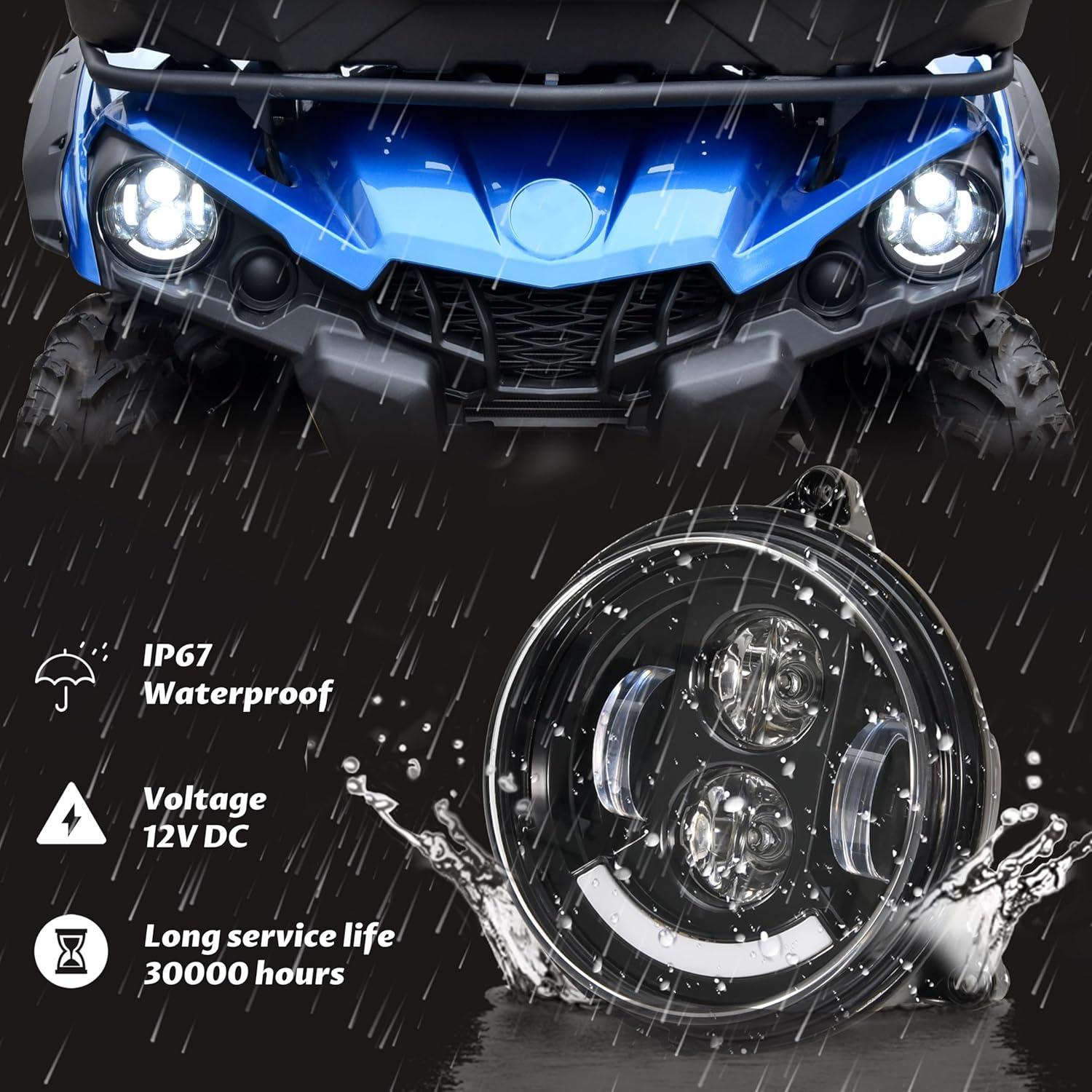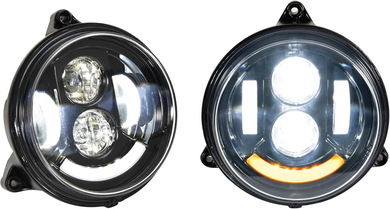 Built-in high-quality LED beads, energy saving and brighter than halogen lights, the illumination is reaching to 2500 Lumens. Different light source modes, DRL with low beam and high beam, turn signal, meet your different needs. Die-cast aluminum housing, advanced air duct design, grooved heat sink, fast heat dissipation.